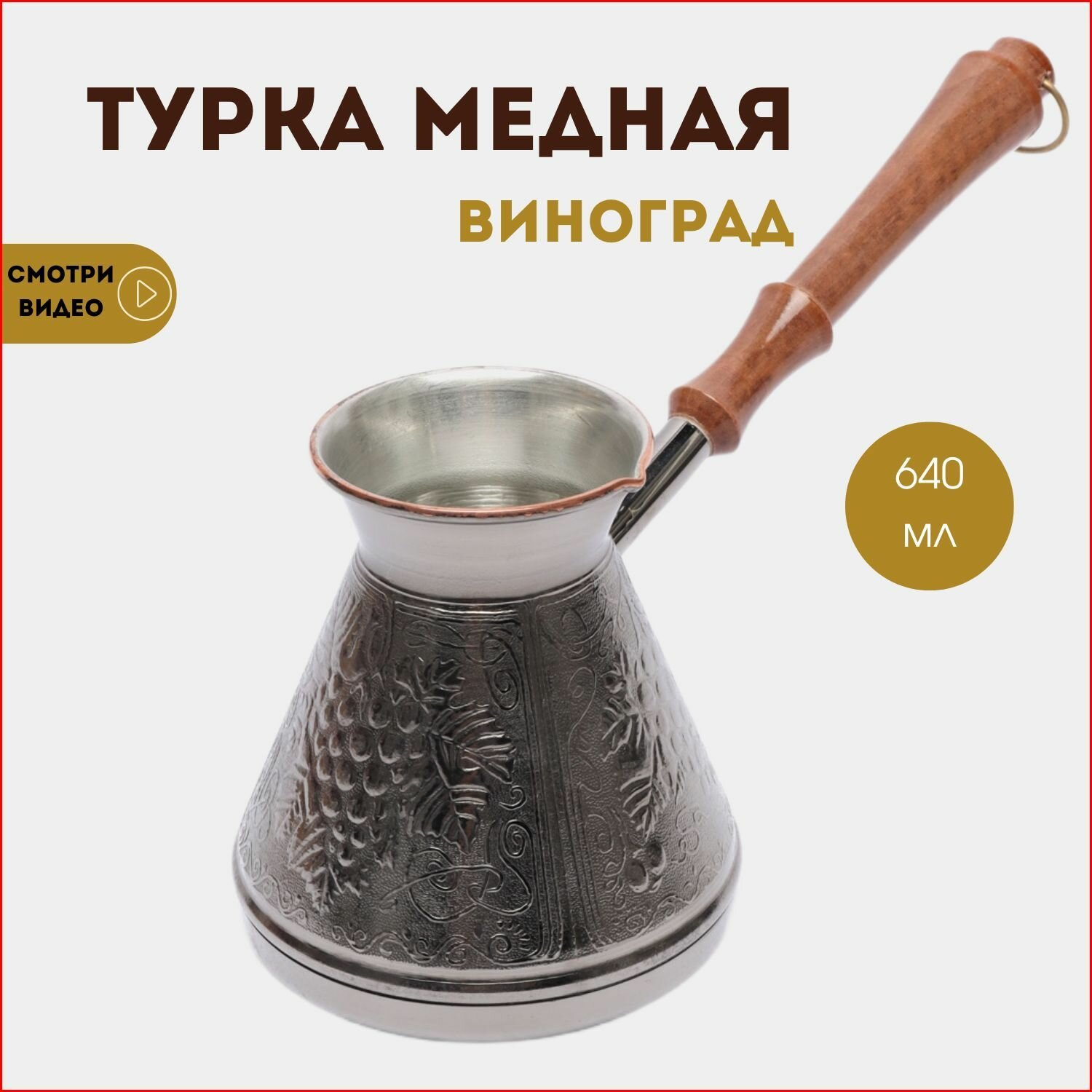СохранитьТурка для кофе, турка медная турецкая джезва с деревянной ручкой, Виноград 0,64 л. интересное: