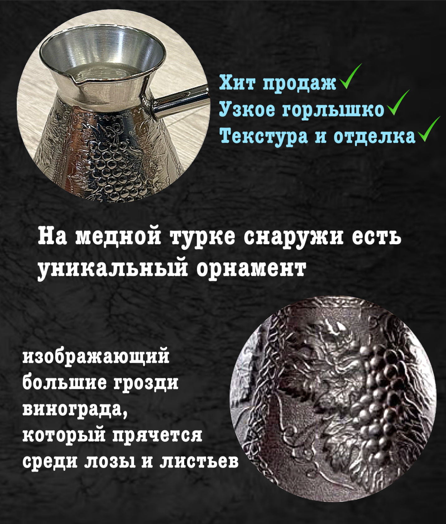 Ниже Вы можете прочитать отзывы на Турка для кофе медная, джезва «Виноград», 380 мл, ИП Кулешов А. Г., ознакомится с подробными характеристиками, посмотреть интересные обзоры и фотографии на Турка для кофе медная, джезва «Виноград», 380 мл, ИП Кулешов А. Г..