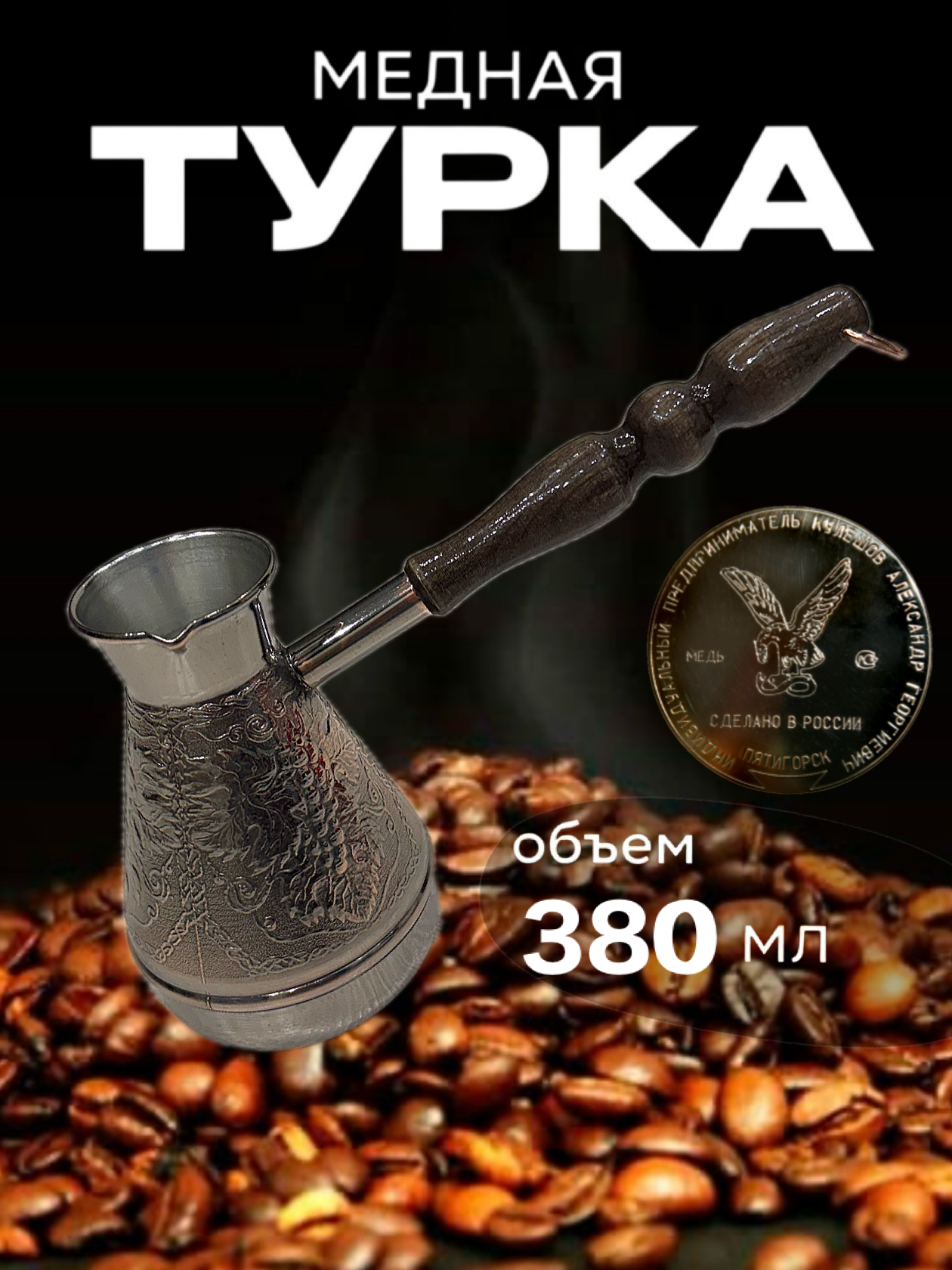 Турка для кофе медная, джезва «Виноград», 380 мл, ИП Кулешов А. Г. интересное: