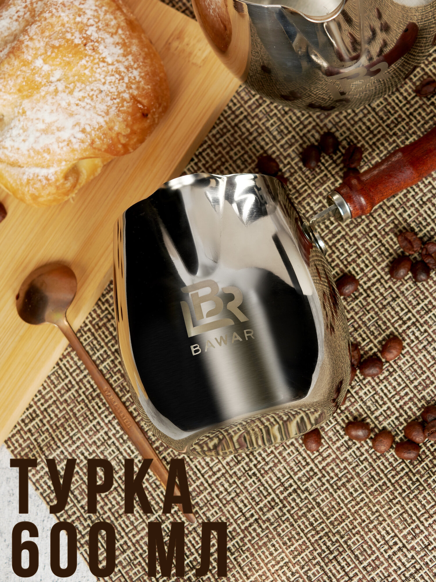 Купить Турка Bawar, для кофе, нержавеющая сталь, 600мл, серебристый