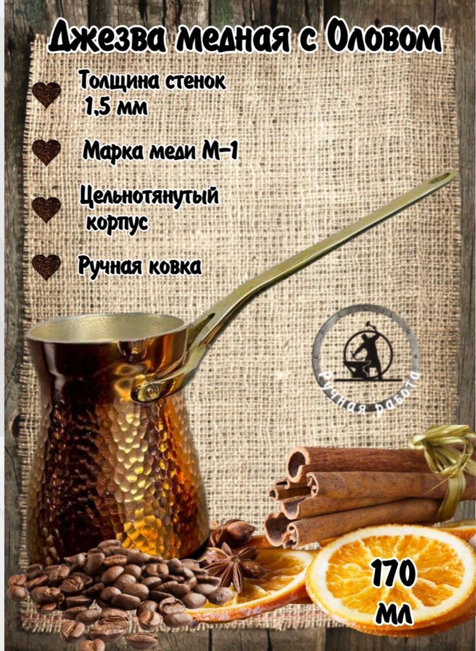 Турка медная кованая, джезва медная ручной работы, лужение олово, чеканка 170мл интересное: