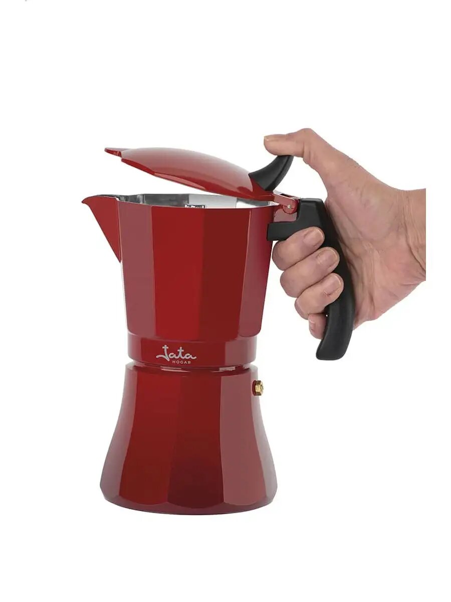 Гейзерная кофеварка JATA, Испания, 6 чашек, алюминий, красная, для индукционной плиты, 240 мл