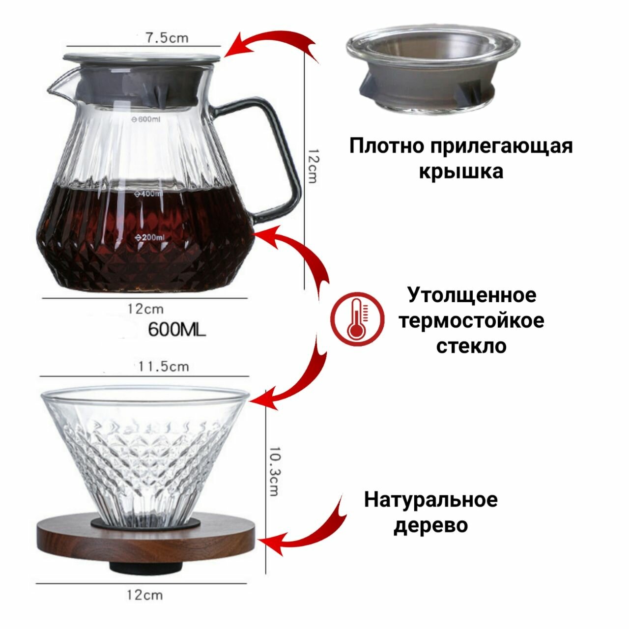 Набор для заваривания кофе, Воронка для кофе, чайник-сервер, стекло "Бриллиант" интересное: