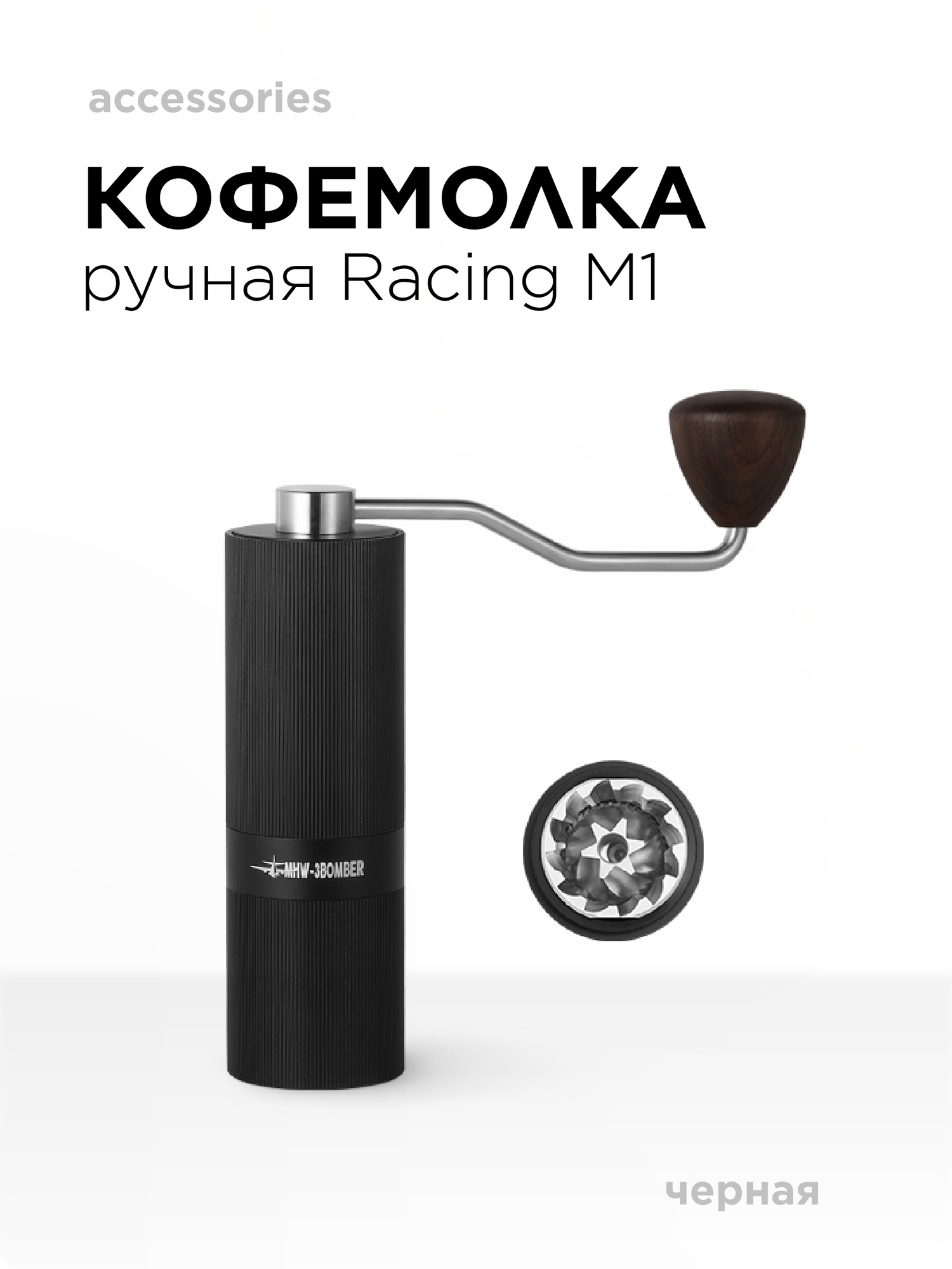 Кофемолка ручная Racing M1 чёрная MHW-3BOMBER, нержавеющая сталь интересное: