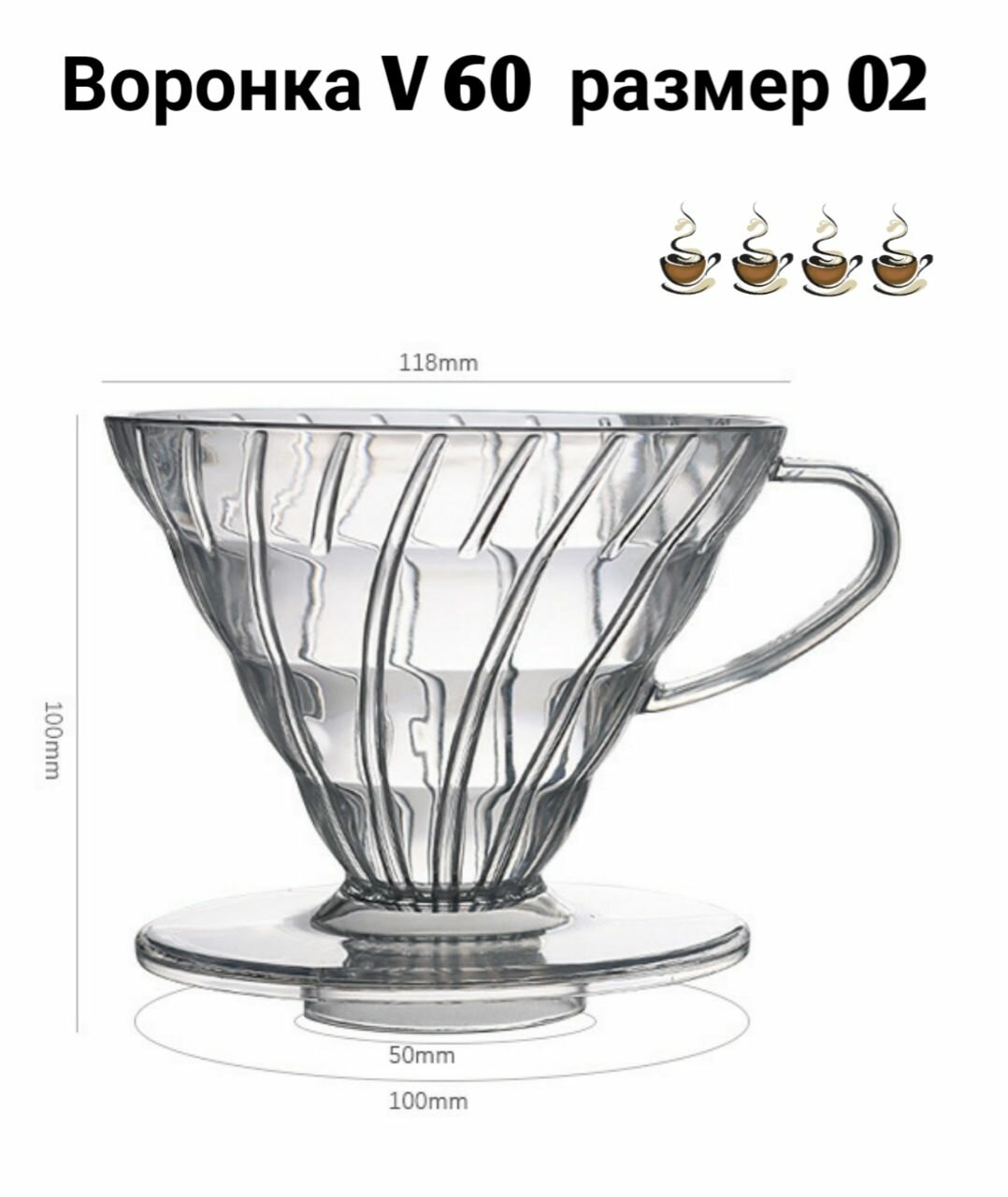Воронка пластиковая для приготовления кофе "CoffeeKoff" VDP-02 прозрачный, пуровер интересное: