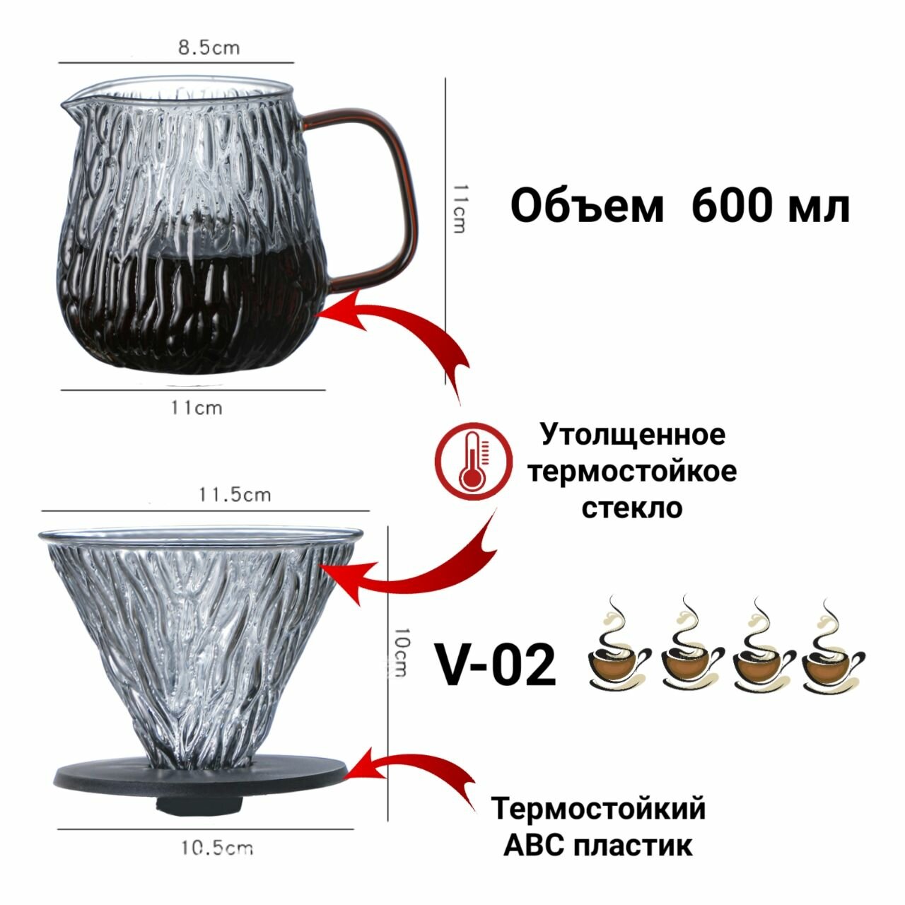 Набор для заваривания кофе, Воронка для кофе, чайник-сервер, стекло "Орех" интересное: