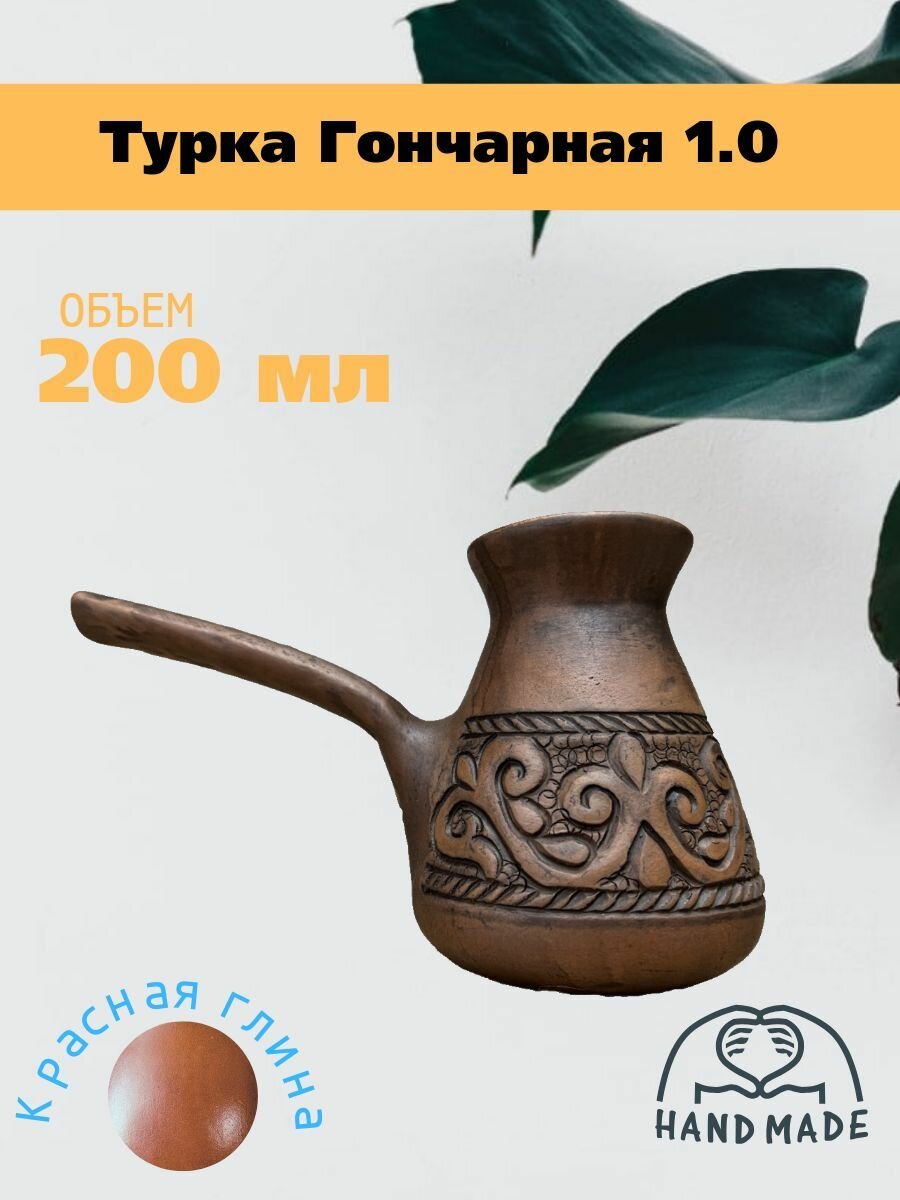 Турка "Гончарная 1.0", лощеная красная глина, мах 200 мл. интересное: