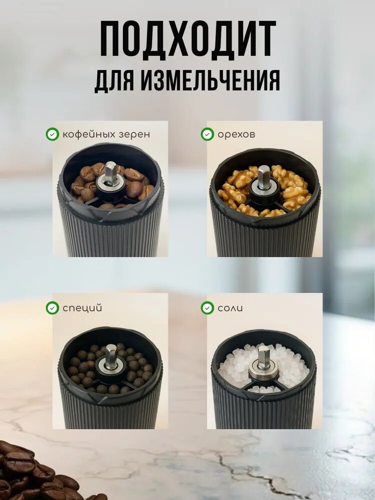 Кофемолка ручная, жерновая, с выбором помола, чёрная, пластик интересное: