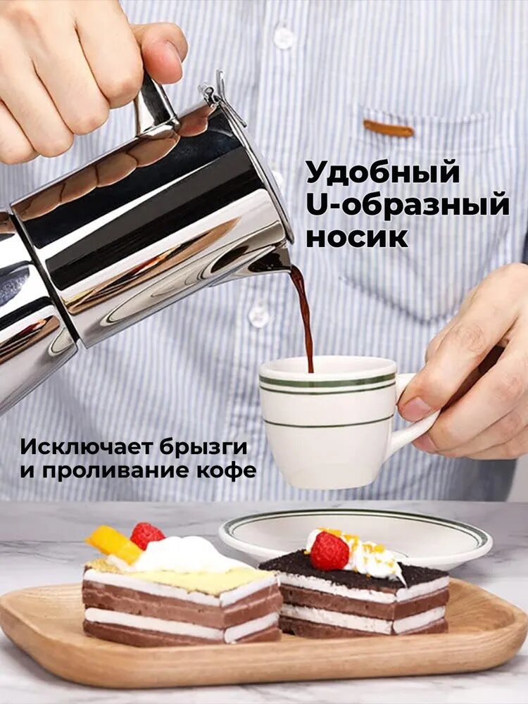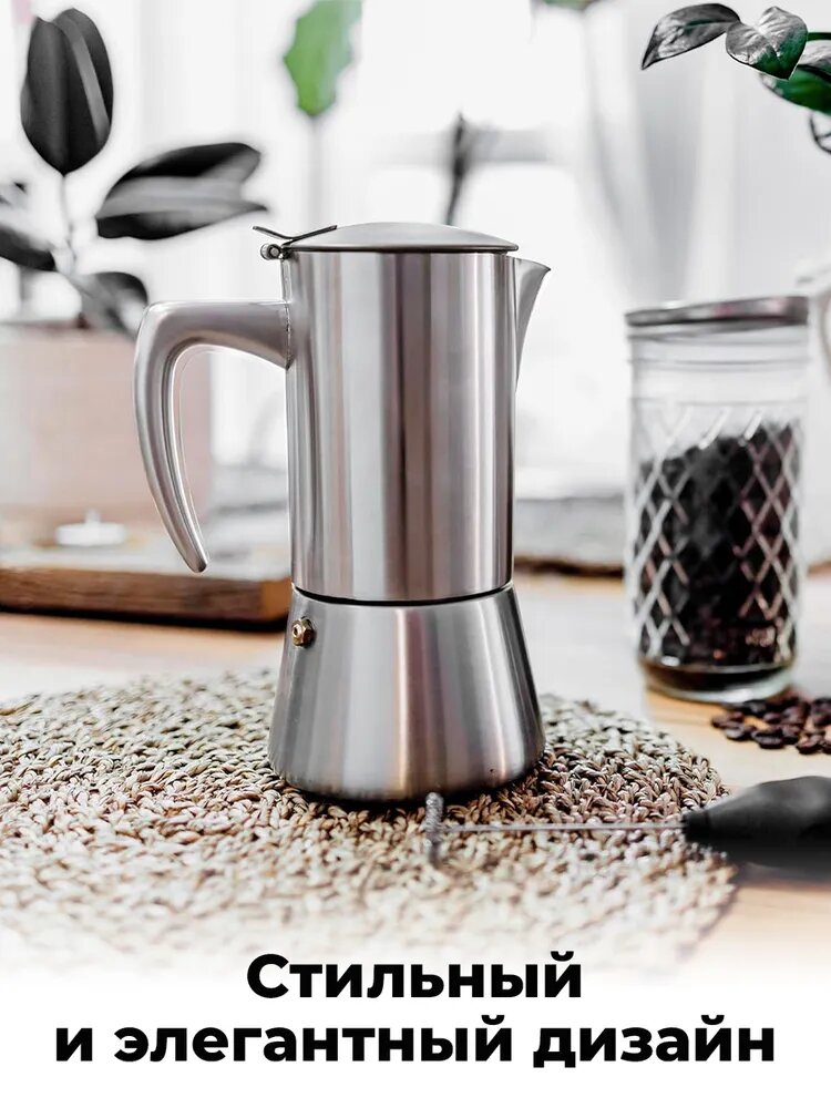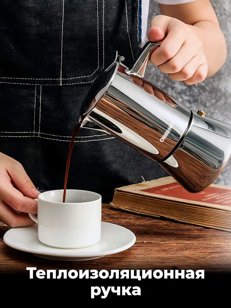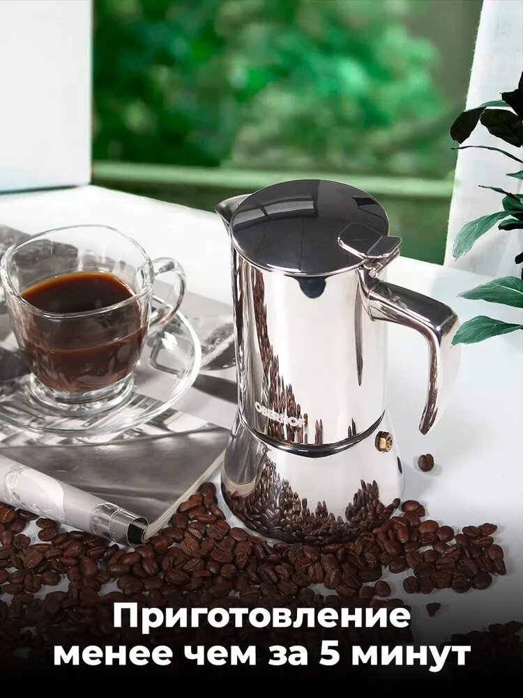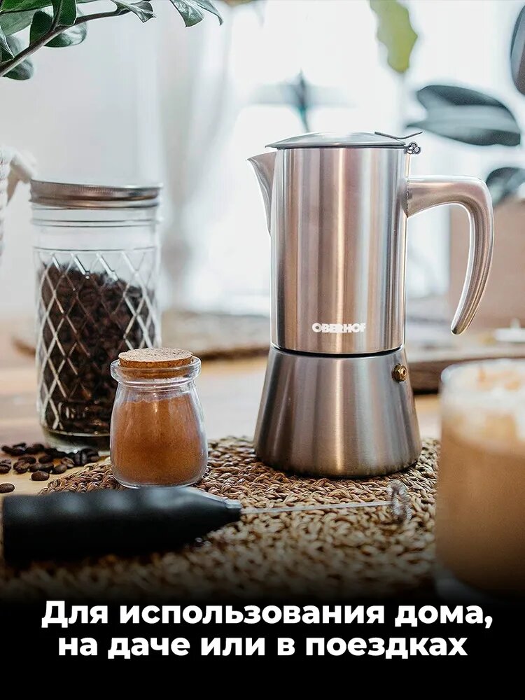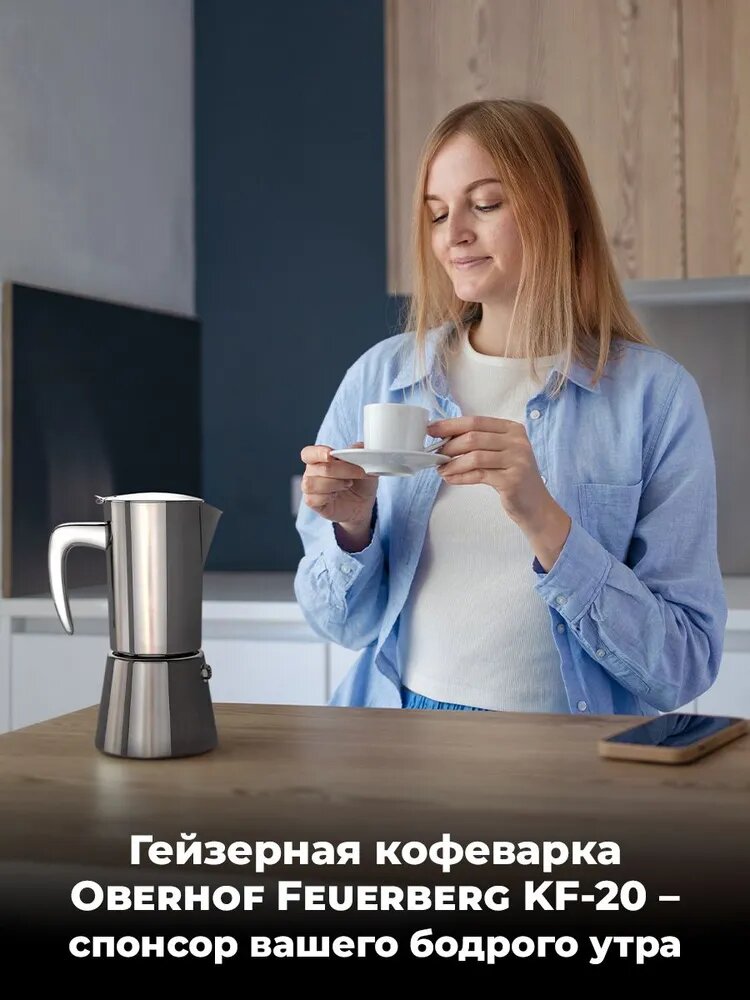 Гейзерная кофеварка OBERHOF Feuerberg KF-20 из нержавеющей стали на 6 порций эспрессо, для индукционной, электрической, газовой плиты, объем 300 мл интересное: