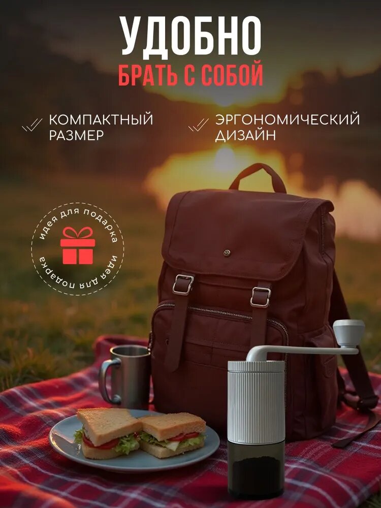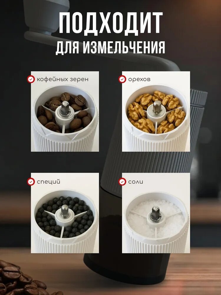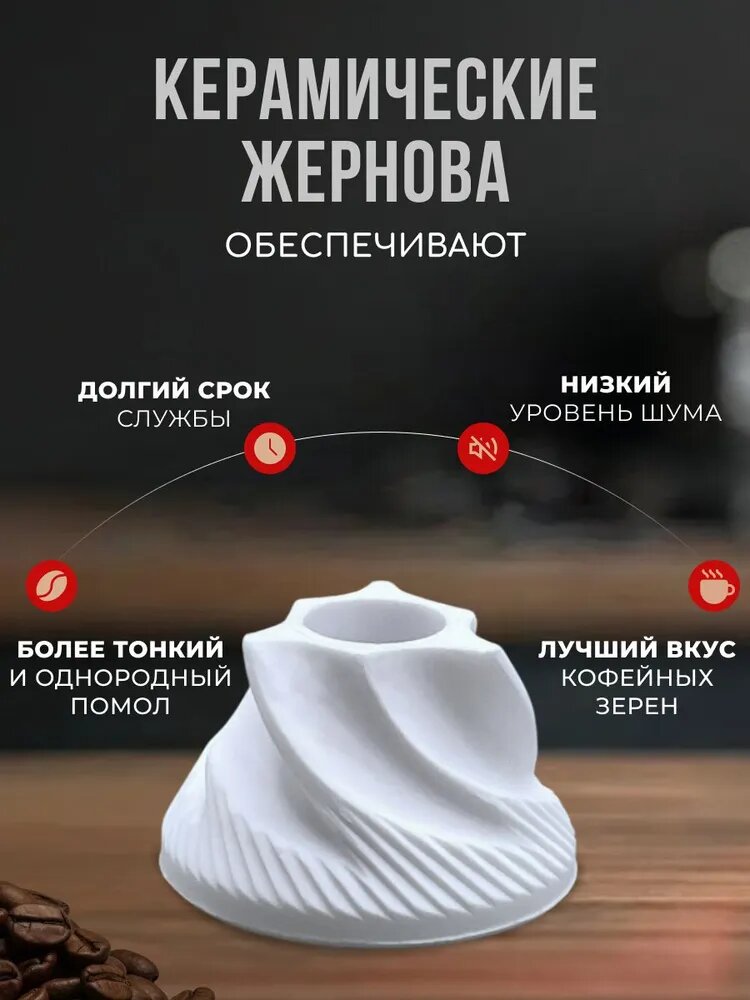 Кофемолка "Ручная жерновая мельница", пластик, керамические жернова, белая интересное: