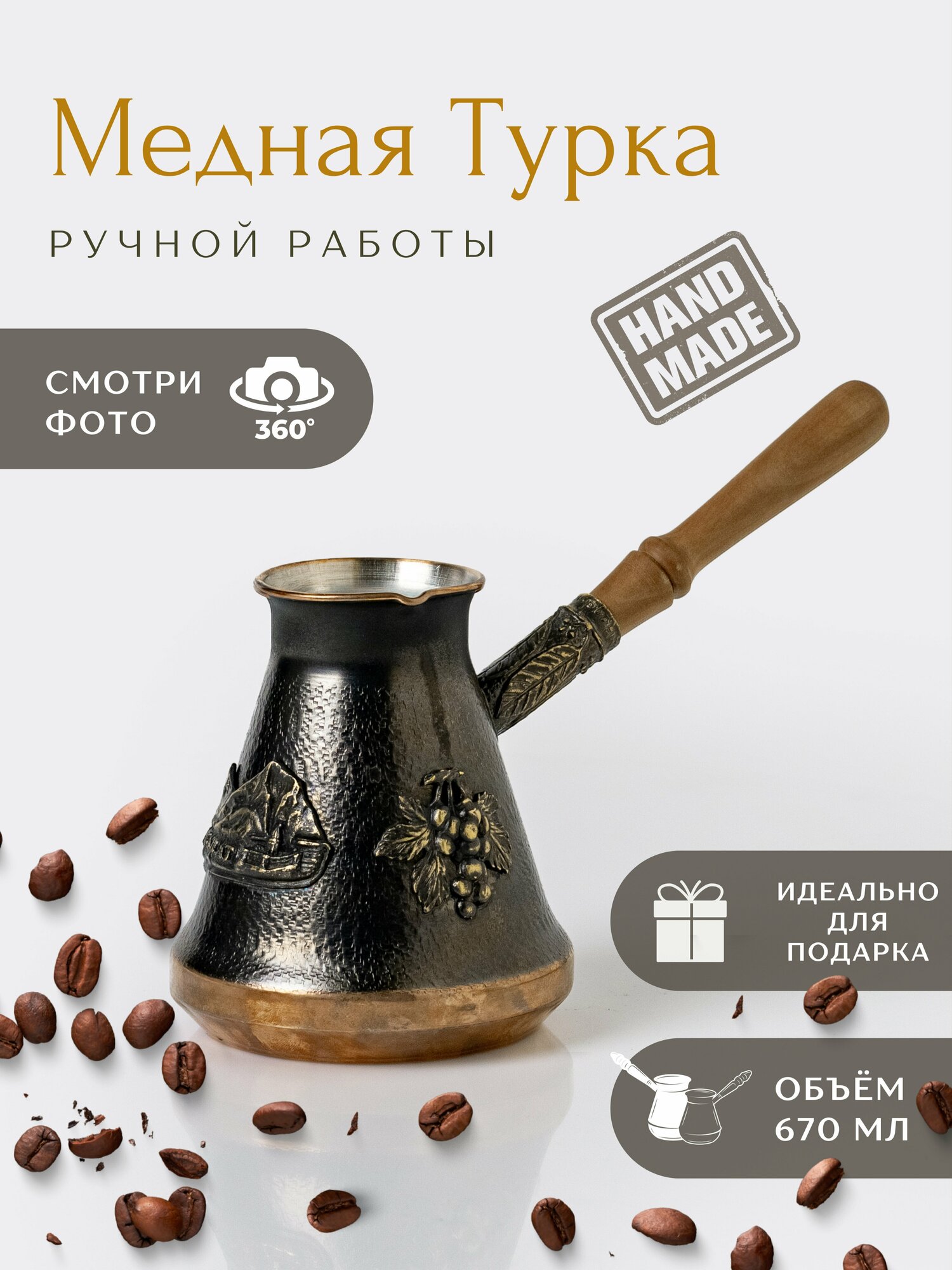 Турка для кофе медная JAZVE Арарат 670 мл интересное: