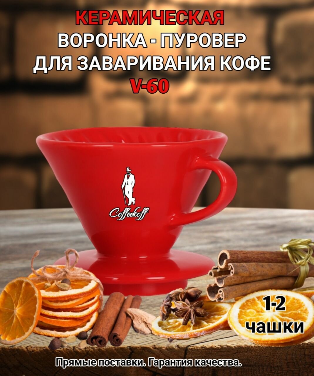 Воронка керамическая для приготовления кофе "CoffeeKoff" VDC-01 красный, пуровер интересное: