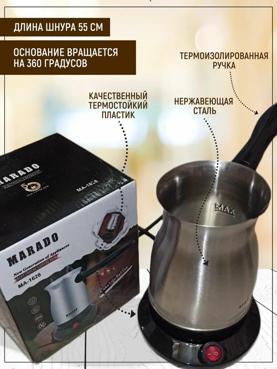 Ниже Вы можете прочитать отзывы на Турка электрическая, кофеварка MARADO, ознакомится с подробными характеристиками, посмотреть интересные обзоры и фотографии на Турка электрическая, кофеварка MARADO.