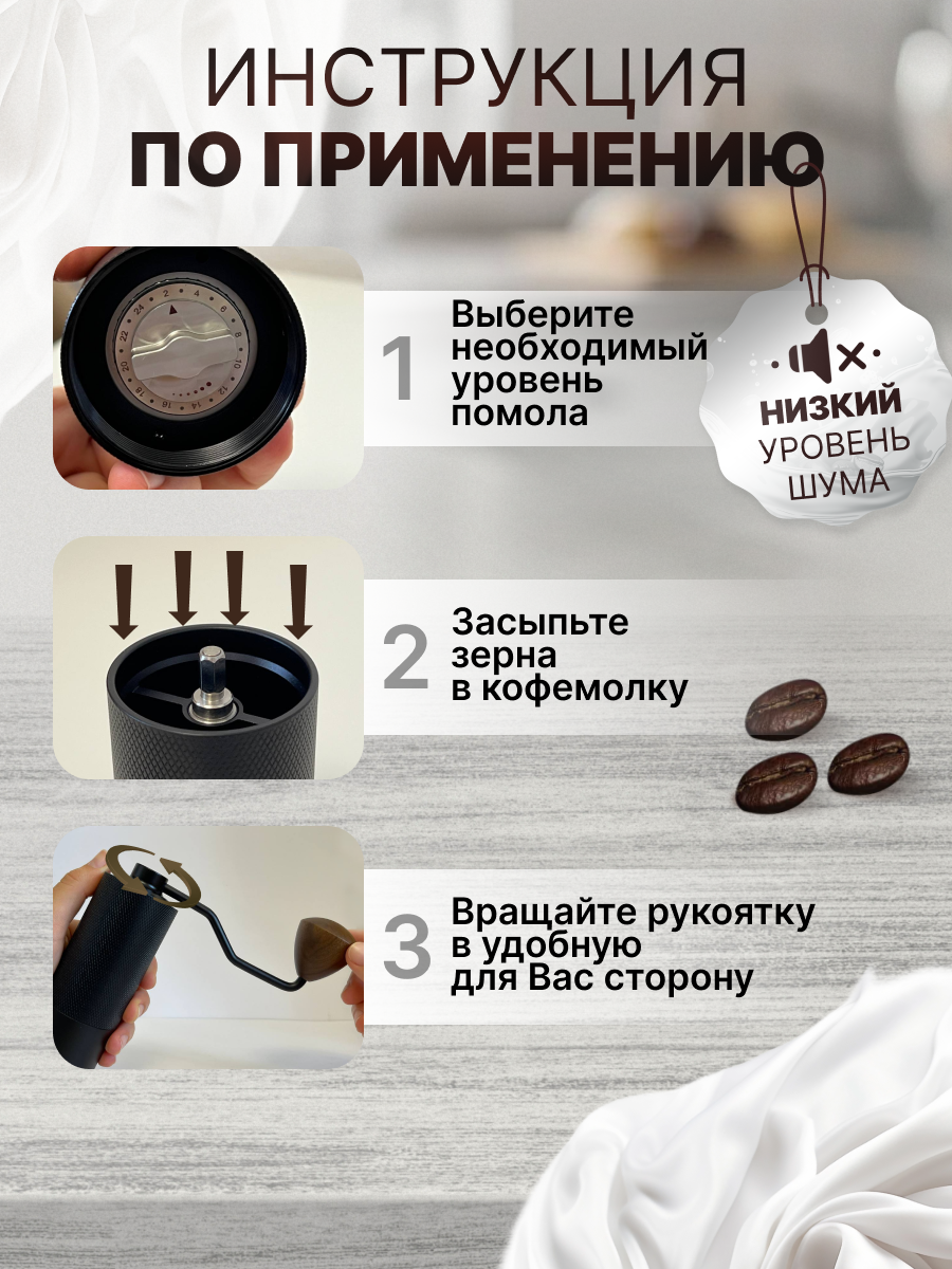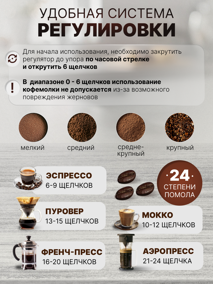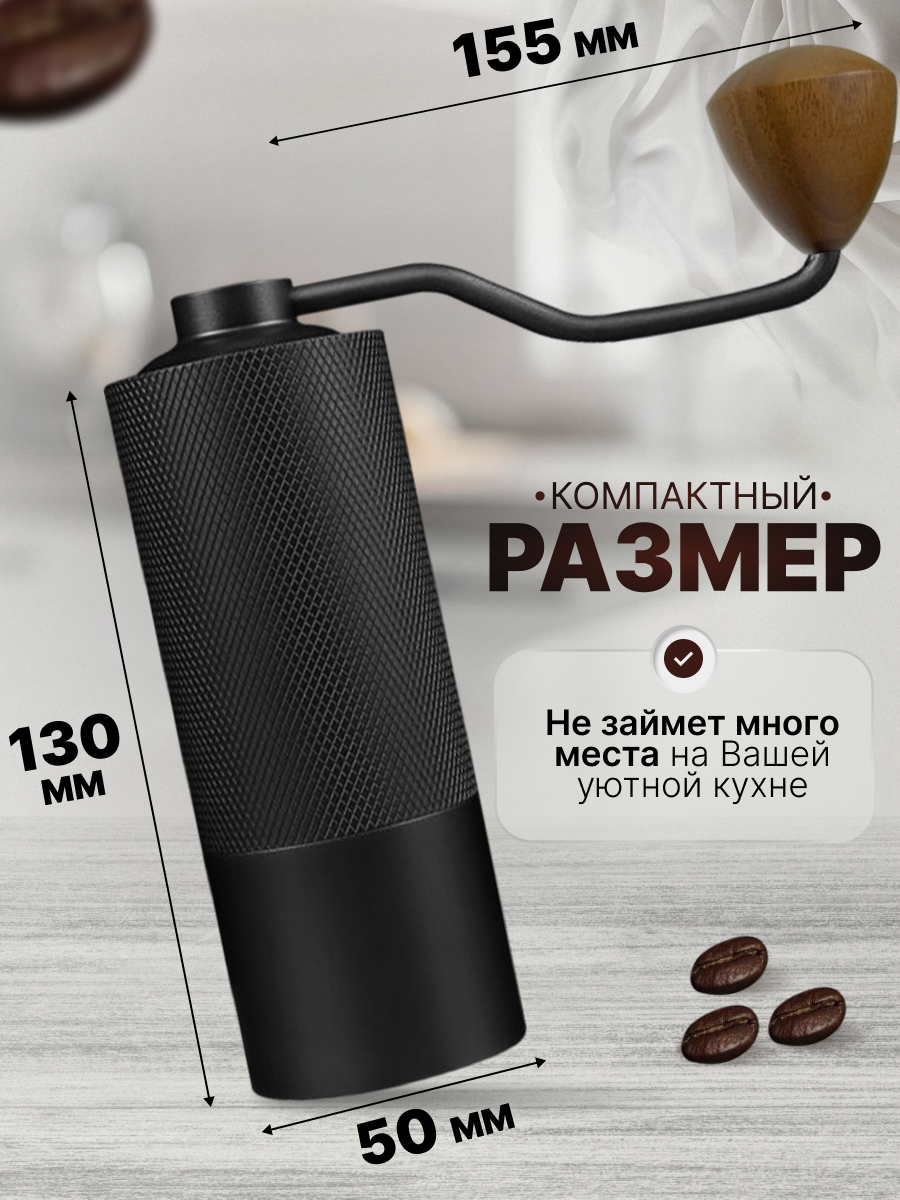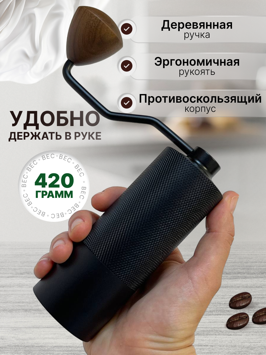 Кофемолка ручная жерновая, 6 лезвий, алюминий, дерево, с выбором степени помола, черная, Premium интересное: