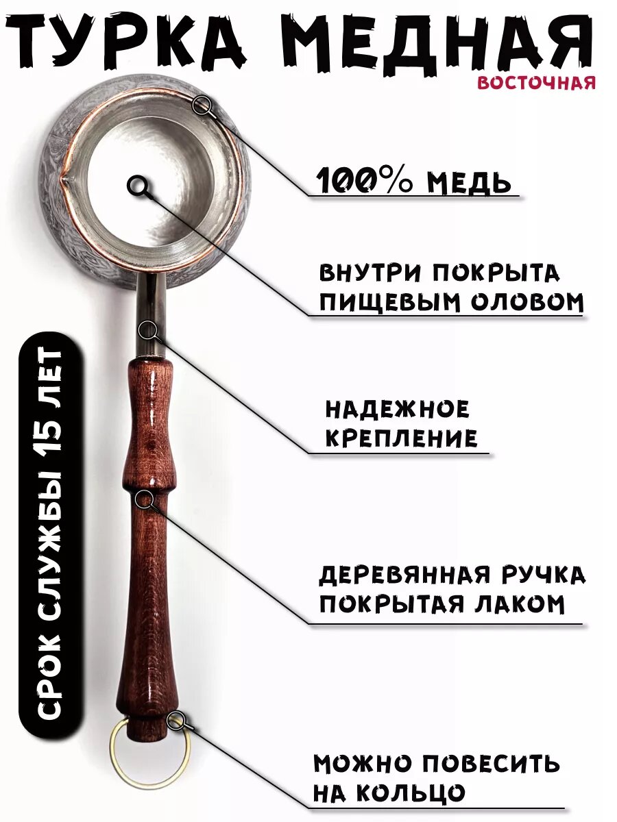 Медная турка джезва для приготовления кофе, кофеварка, "Ромашка" 540 мл интересное: