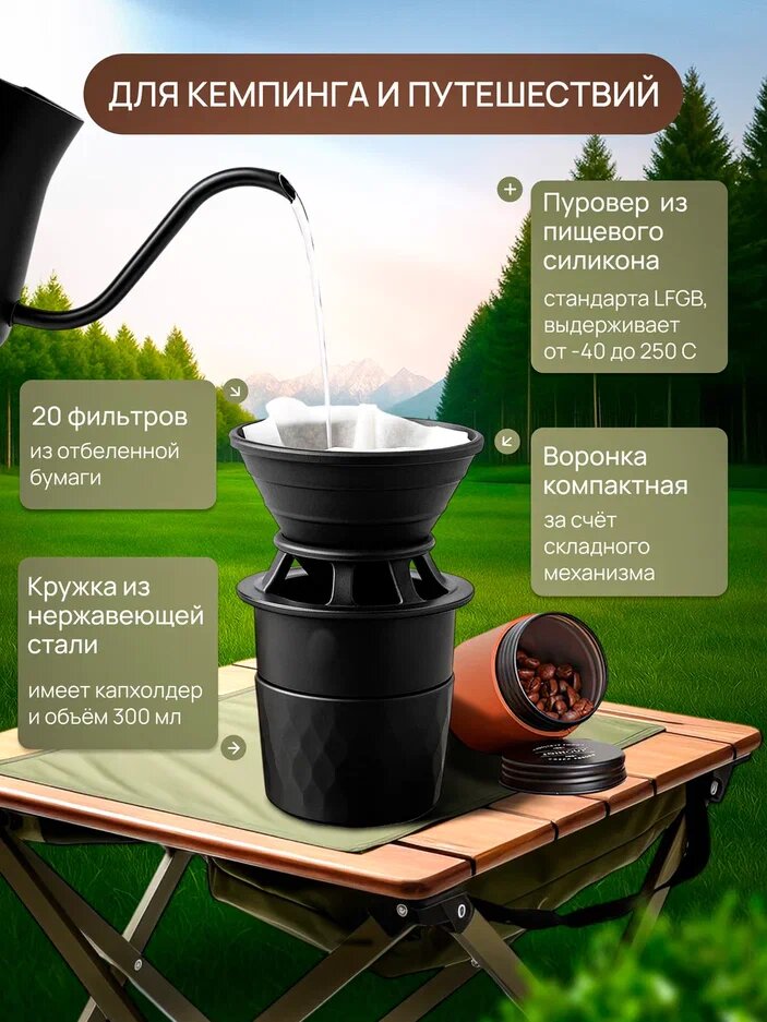 Набор для заваривания кофе Joinout портативный для кемпинга (5 предметов) интересное: