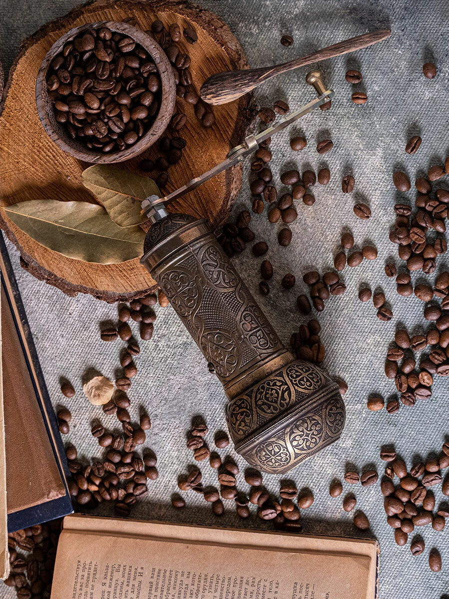 Кофемолка ручная для кофе специй металлическая турецкая мельница интересное: