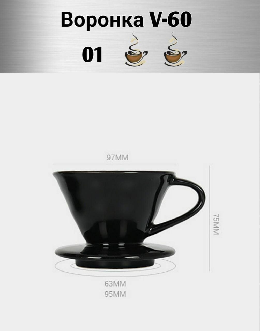 Воронка керамическая для приготовления кофе "CoffeeKoff" VDC-01 черный, пуровер интересное: