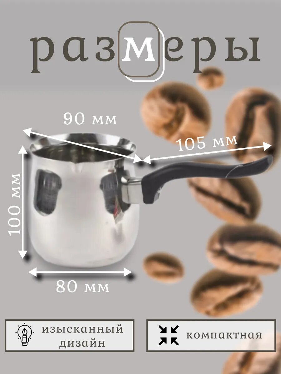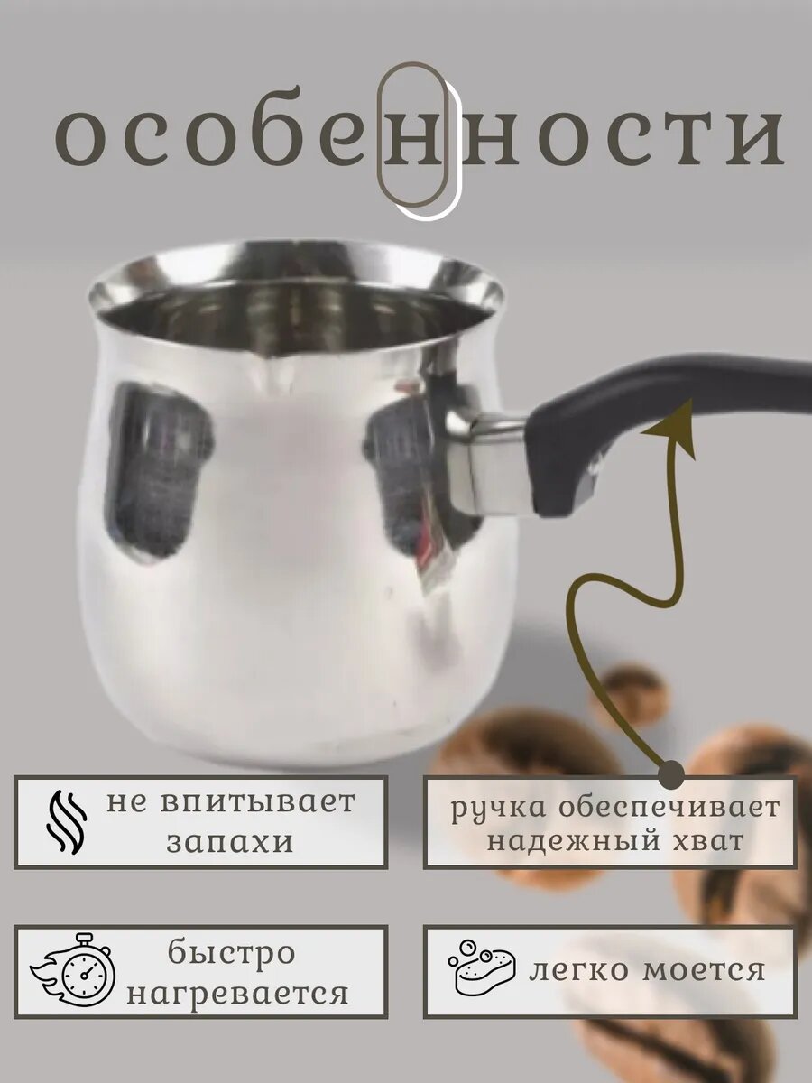 Турка для приготовления кофе, стальная, индукционная, 380 мл.