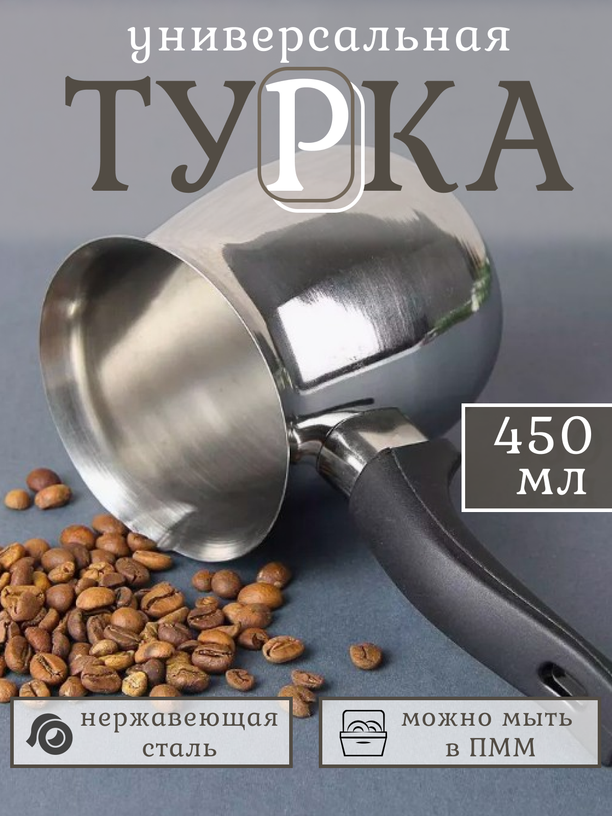СохранитьТурка универсальная для кофе, стальная, черная ручка 450 мл, интересное:
