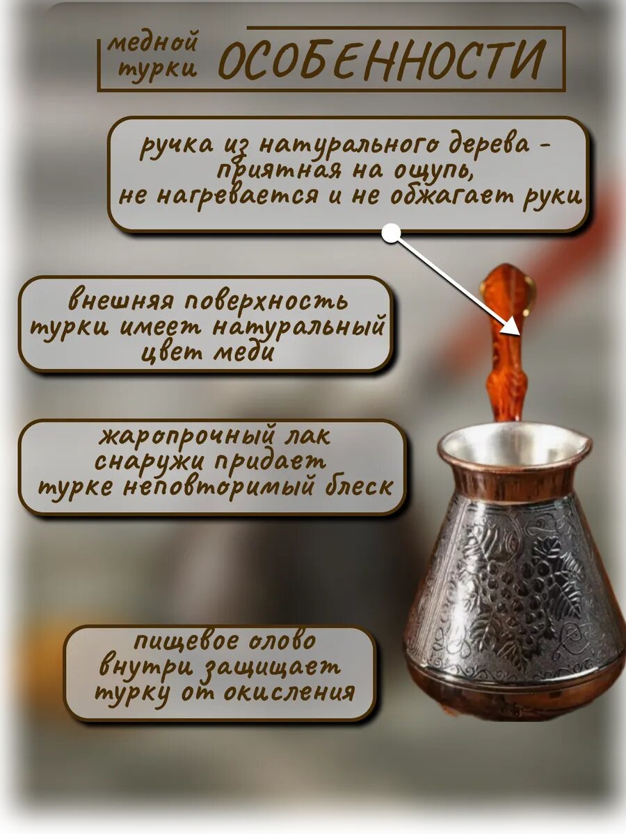 Турка для приготовления кофе, медная, в восточном стиле 400мл