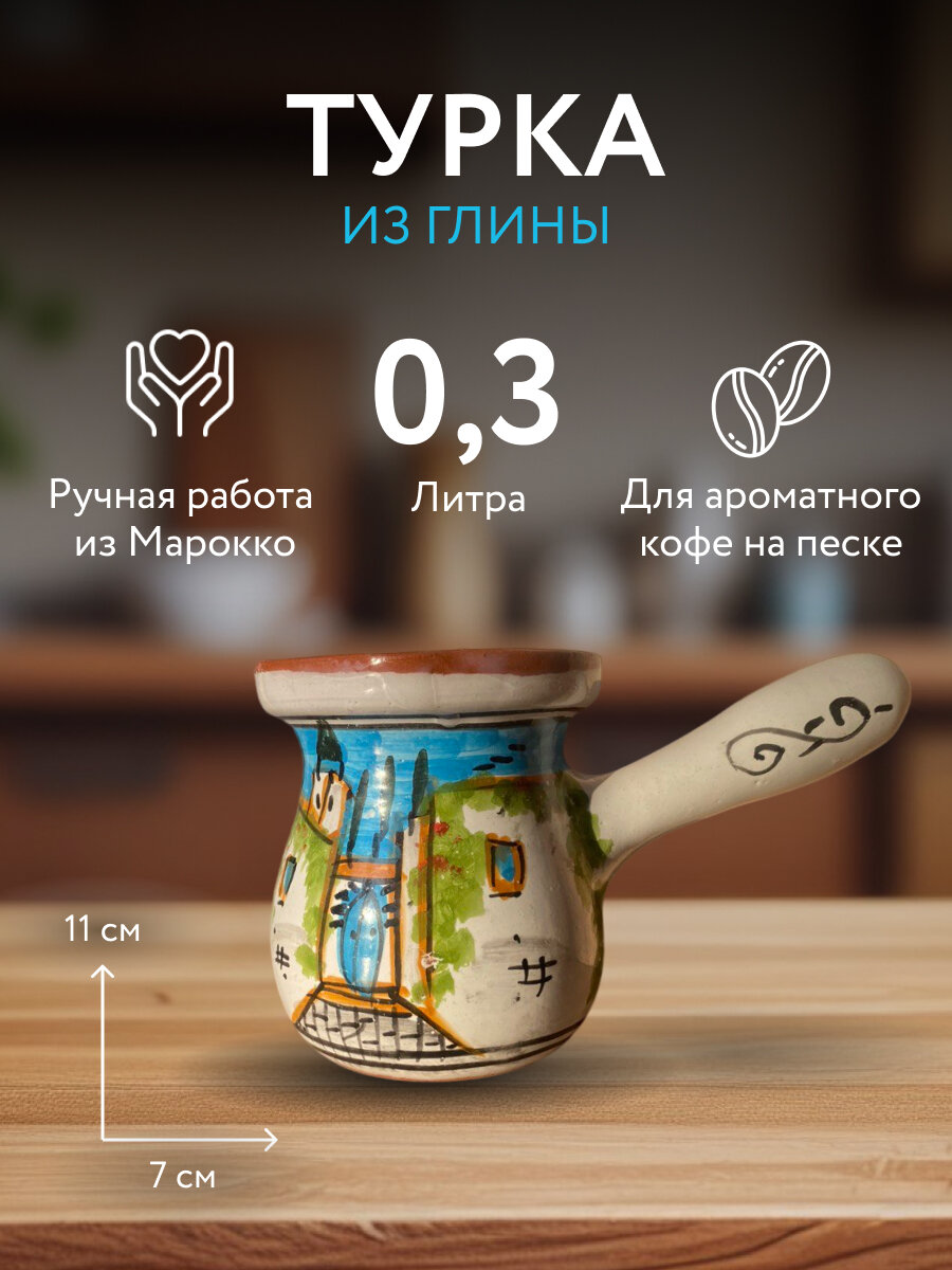 Турка для кофе ручной работы, керамика, ручная роспись, 300 мл