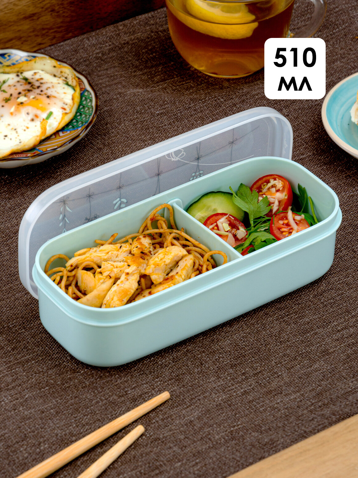 Контейнер для еды пластиковый с крышкой ланч-бокс с 2 отделениями 650 мл 16,1х12х4,8см