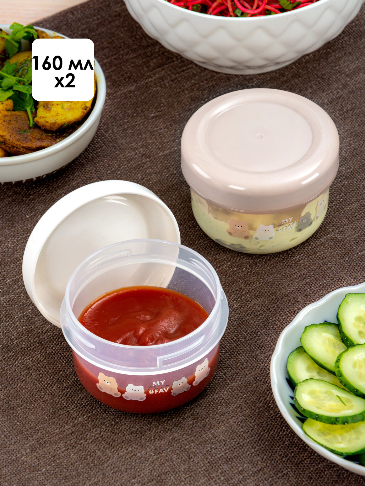 Купить Контейнер для еды и сыпучих продуктов пластиковый с крышкой набор 2 шт. 160 мл, Д7,8х5,4 см
