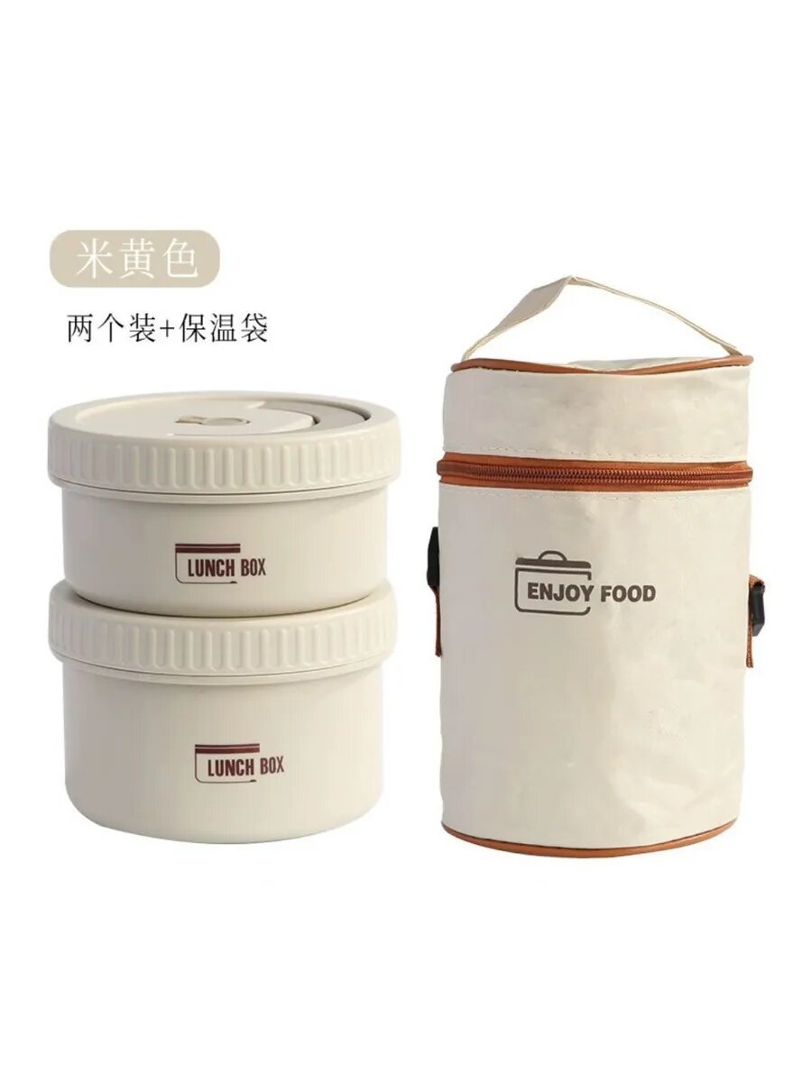 Ланч бокс , герметичный, 2 контейнера, цвет капучино в чехле