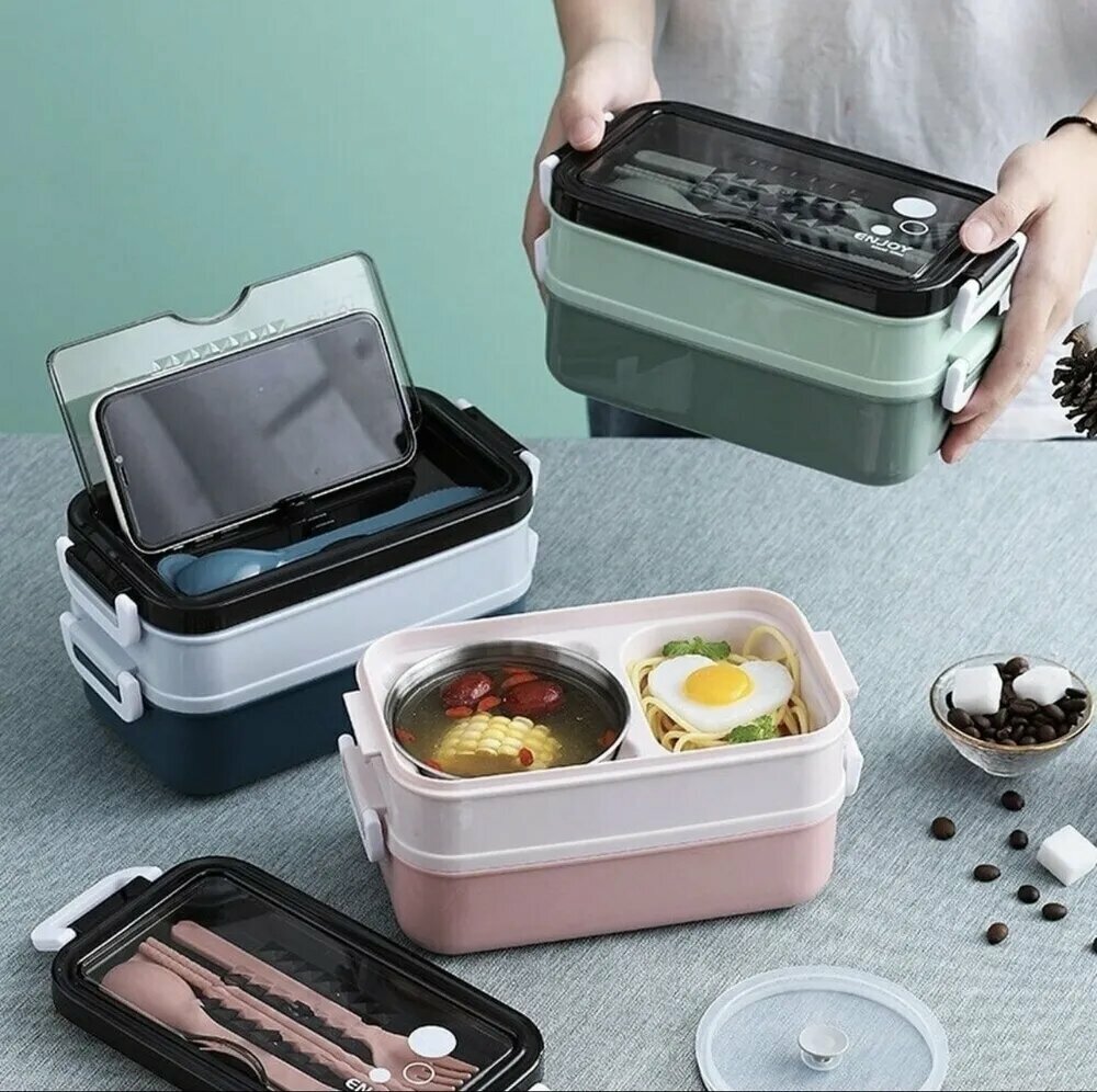 Ланч-бокс ENJOY с двумя контейнерами и столовыми приборами, розовый, 1400мл интересное: