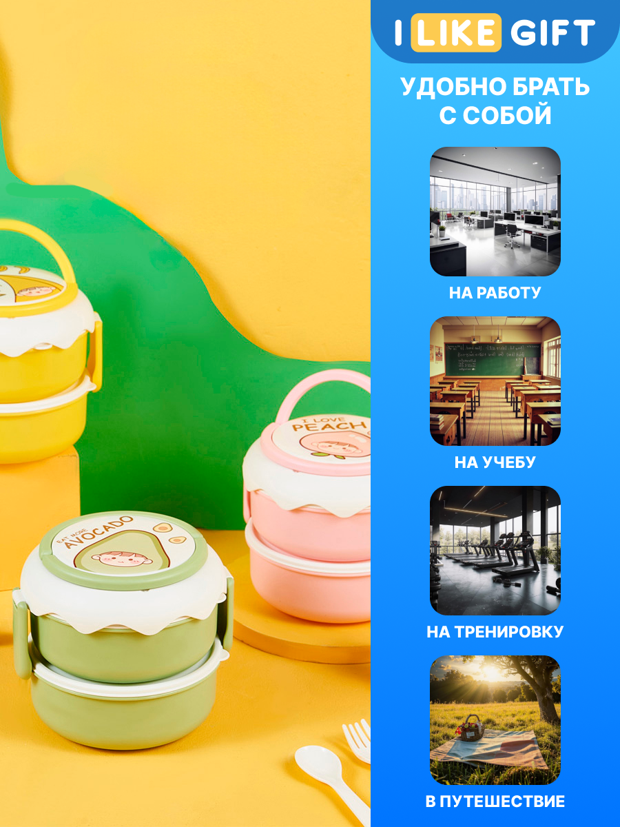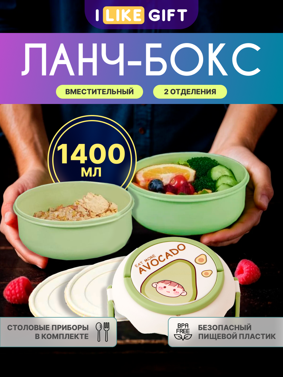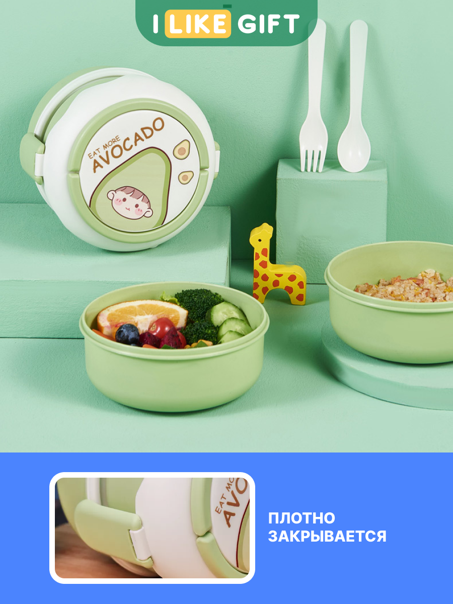 СохранитьЛанч бокс "Circle eat more avocado" для еды двухъярусный с приборами, пищевой пластик, 1400 мл интересное: