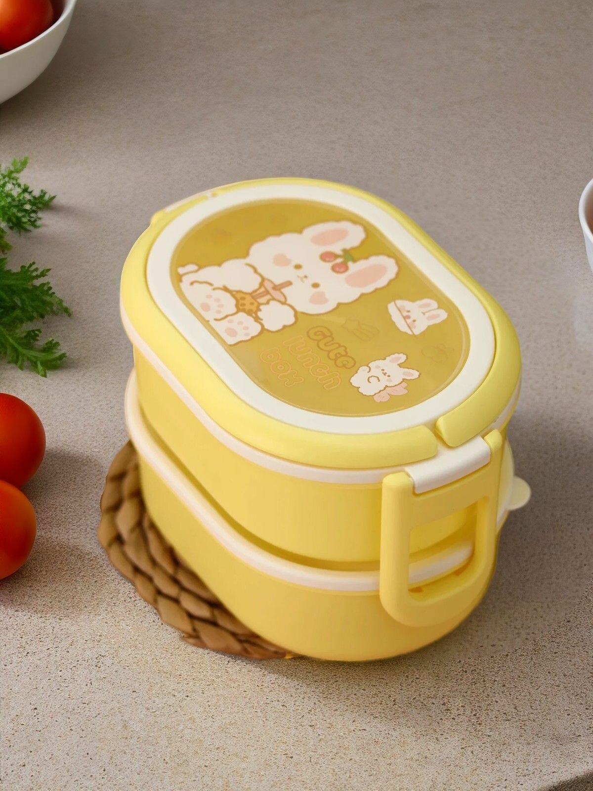 Купить Ланч бокс "Cute bunny" для еды, контейнер секционный с приборами, пищевой пластик, 2000 мл