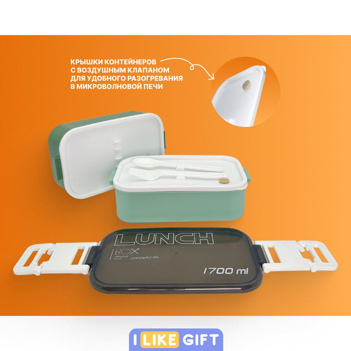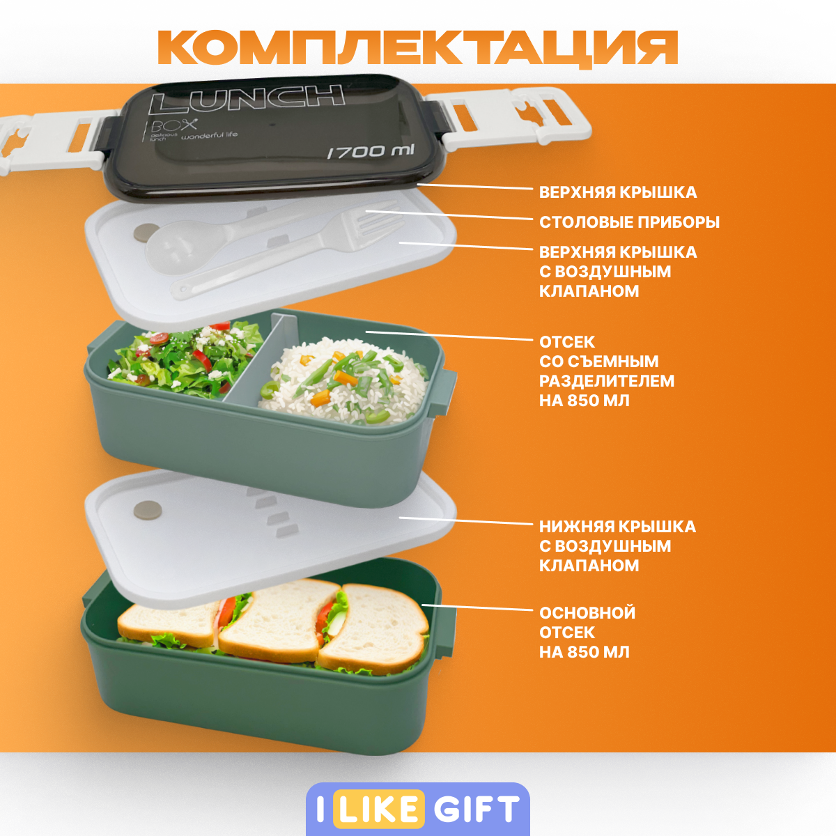 Ланч-бокс с отделениями и столовыми приборами