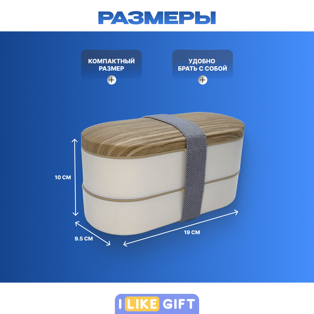 Ланч бокс для еды с приборами двухъярусный, пищевой пластик, 800 мл