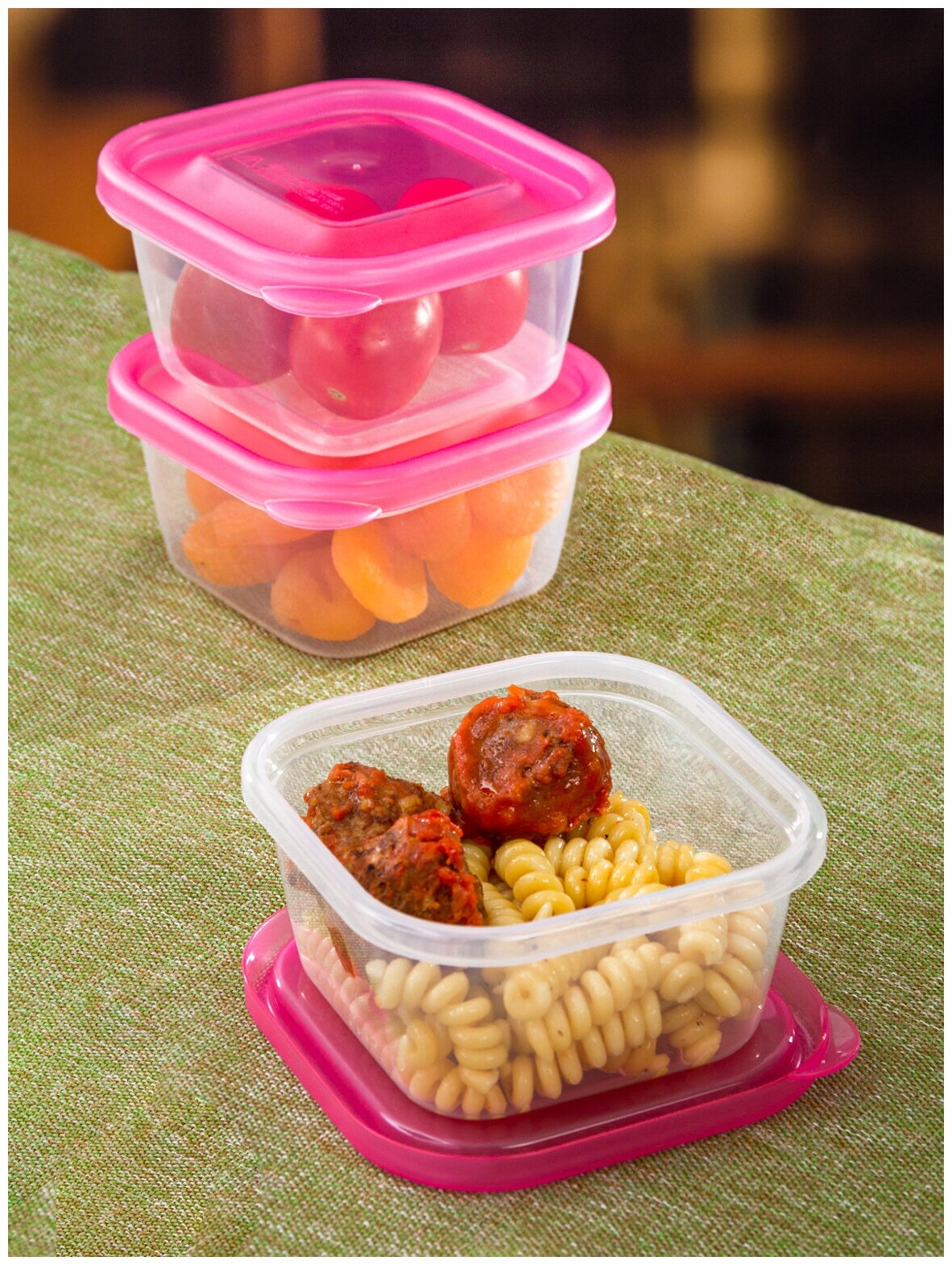Контейнер для еды пластиковый с крышкой набор 3 шт, 380 мл (С), 12,7х12,7х4,9 см