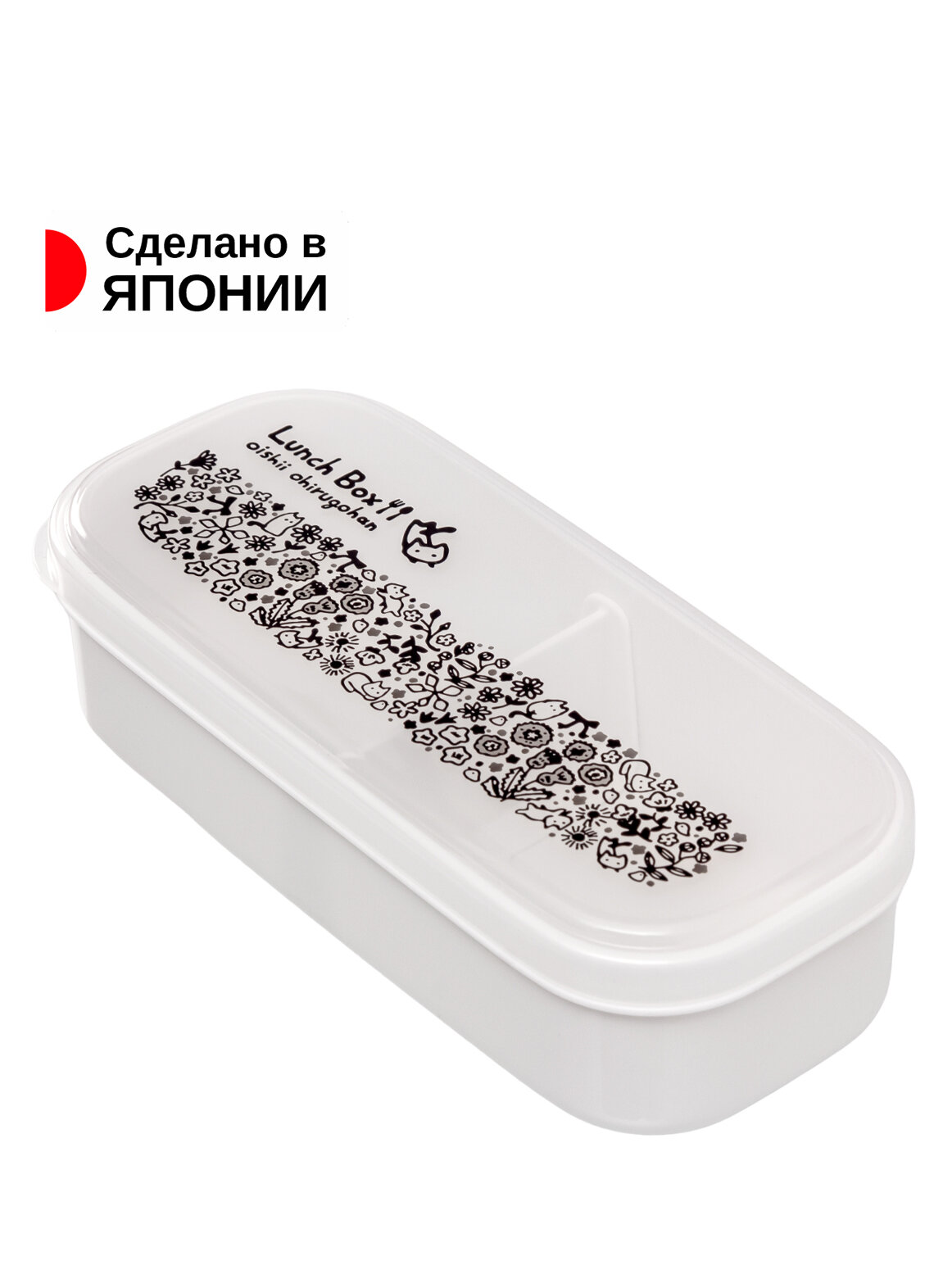 Контейнер для еды пластиковый с крышкой ланч-бокс размер L 650 мл, 16х12х4,7 см белый с узором
