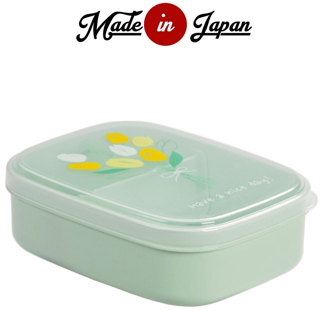 Контейнер для еды пластиковый с крышкой ланч-бокс размер S 510 мл, 18,2х8х5 см с тюльпанами