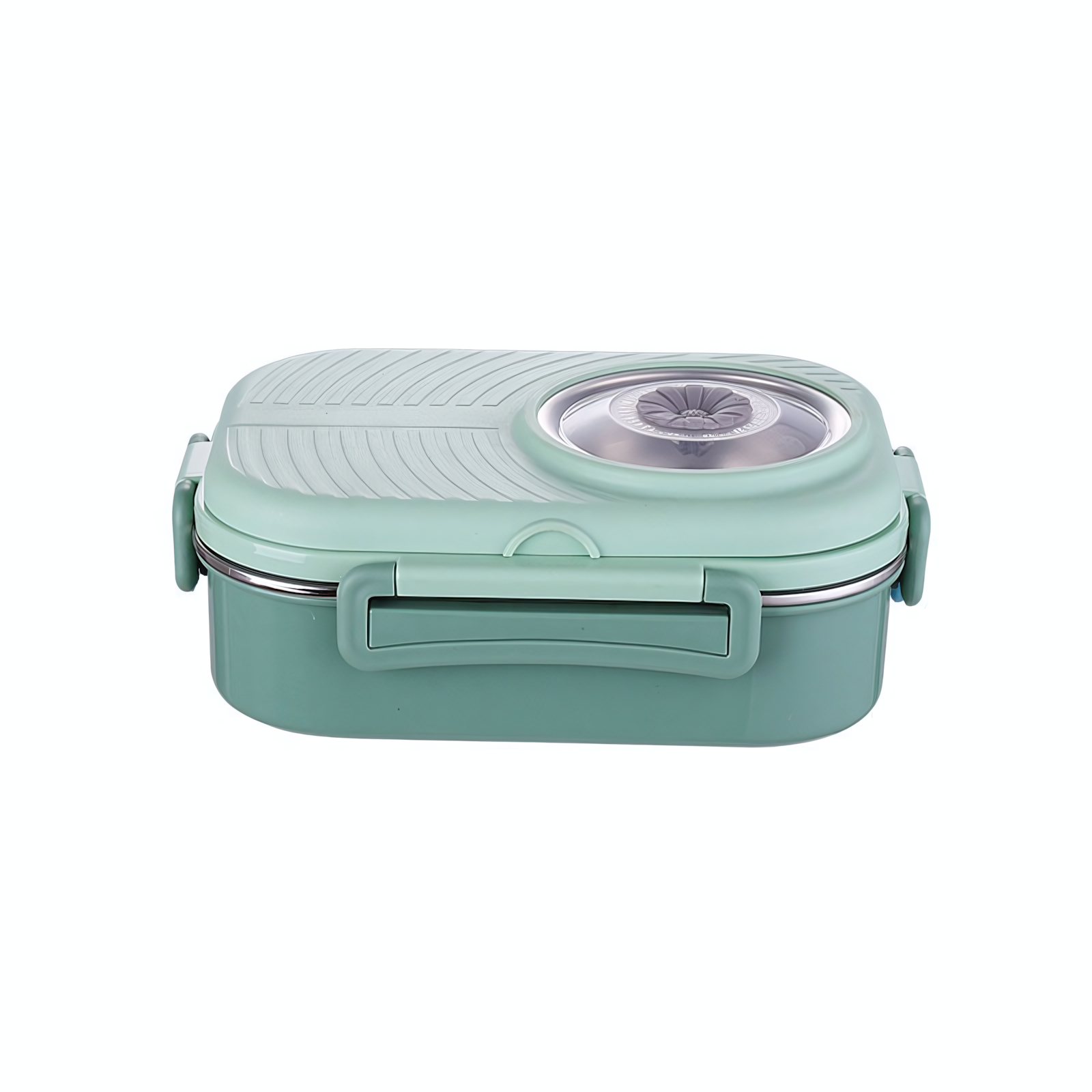Купить Ланч-бокс Yue Qiao, с тремя отделениями и приборами, противоскользящее дно, зеленый, 1200мл