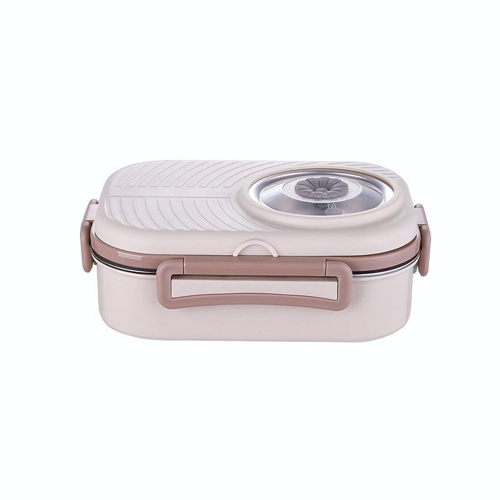 Ланч-бокс Yue Qiao, с двумя отделениями и приборами, бежевый, 1200мл