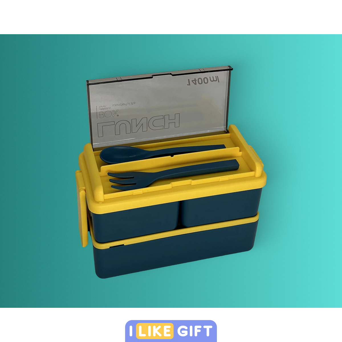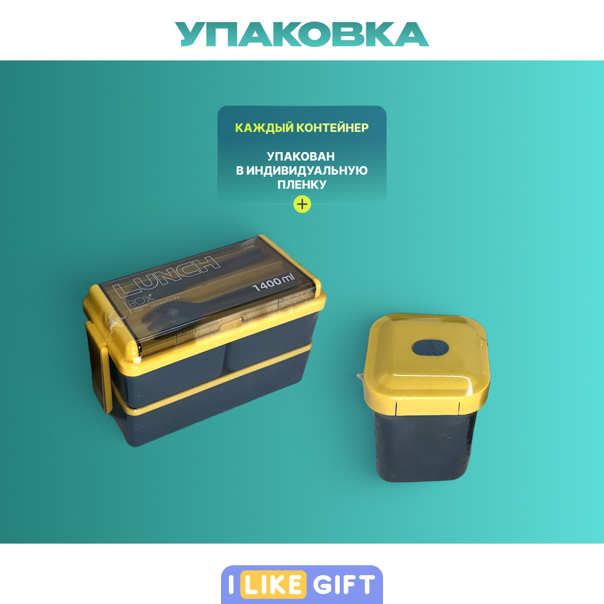 Ланч-бокс контейнер с отделениями и приборами "Big life" синий/желтый, пластик, 1400 мл