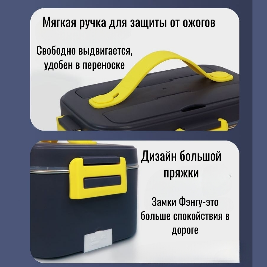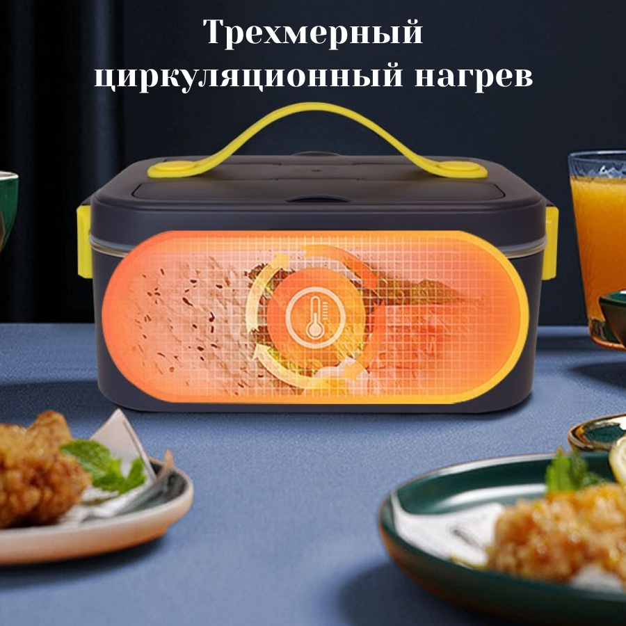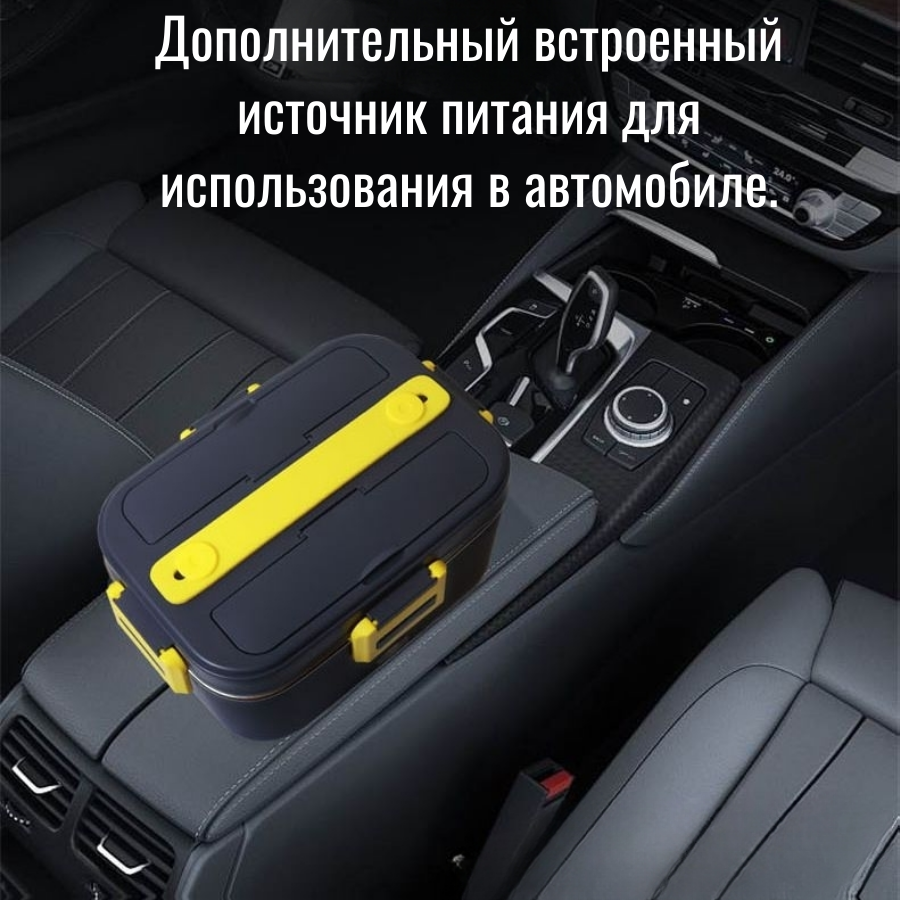 Ланч-бокс с подогревом еды Ланч бокс от прикуривателя автомобиля /24*17*12 см/ цвет Темно-серый