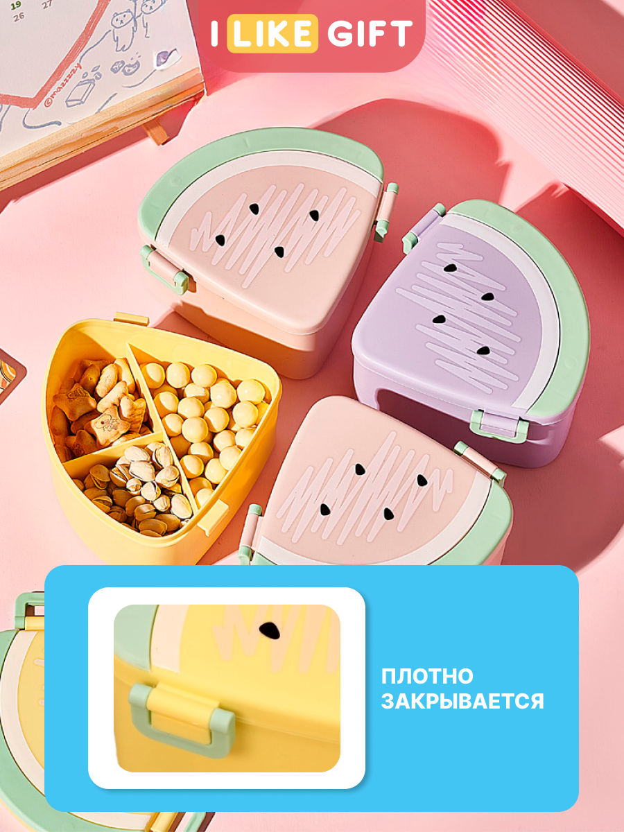 Купить Ланч бокс «Watermelon» с отделениями и приборами, пищевой пластик, 700 мл