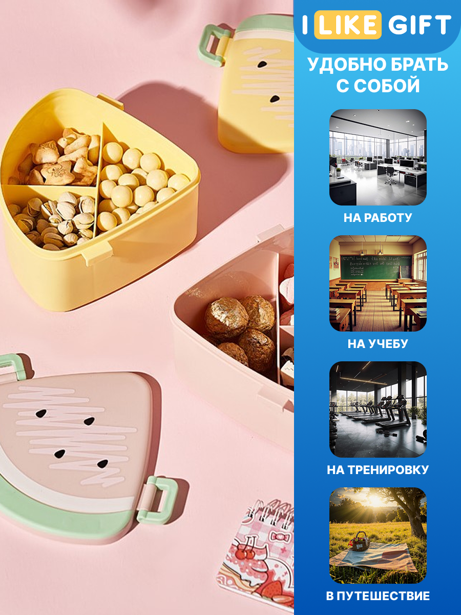 СохранитьЛанч бокс «Watermelon» с отделениями и приборами, пищевой пластик, 700 мл интересное: