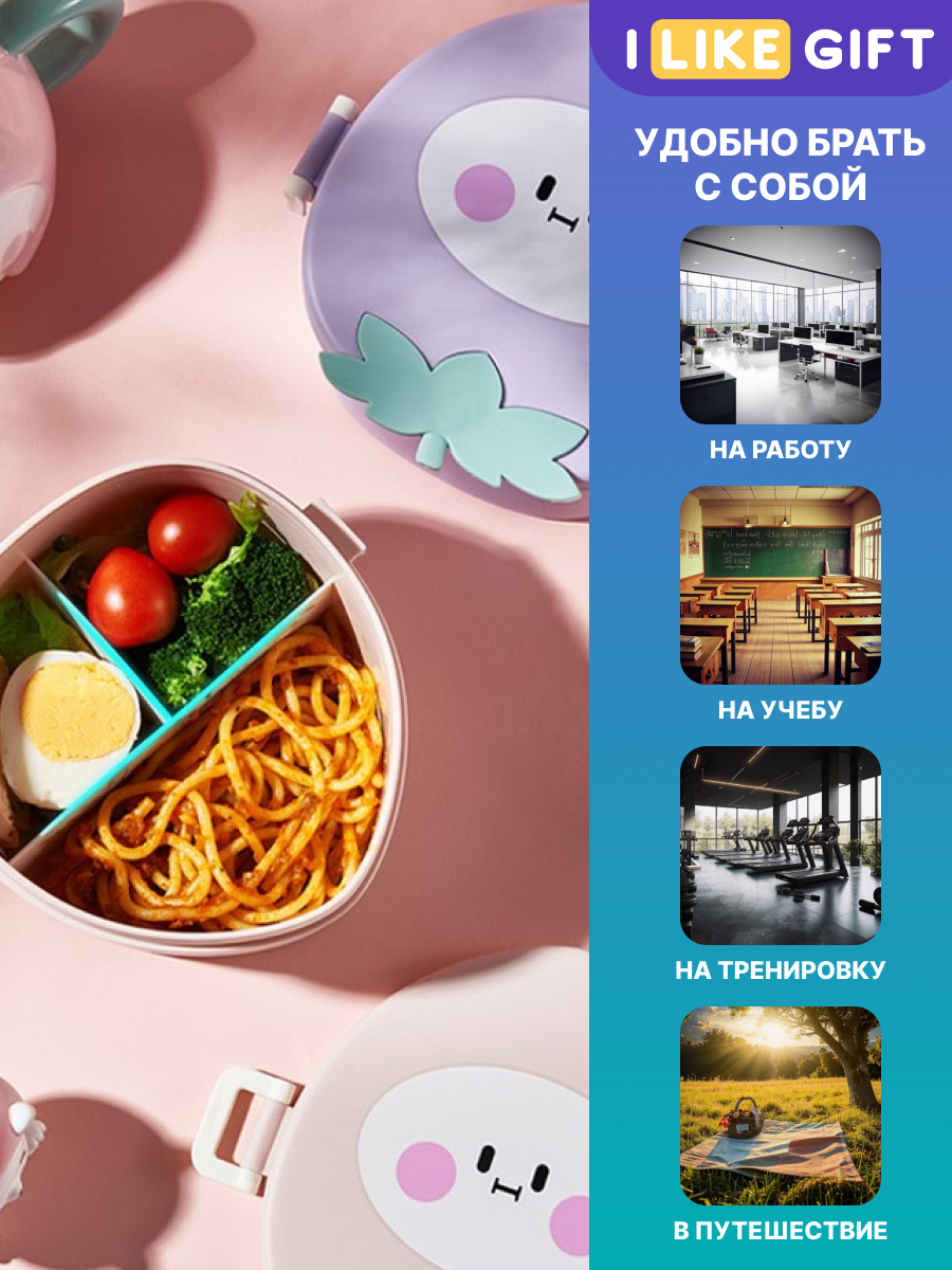 Ланч бокс "Lovely" для еды детский с отделениями и приборами, пищевой пластик, 1200 мл