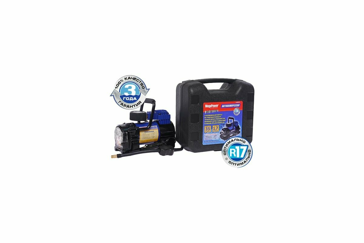 MEGAPOWER-AUTOMOTIVE M-88012 Компрессор автомобильный 35л/мин. 10атм. 14А 12V (фонарь, дефлятор, кейс) MEGAPOWER