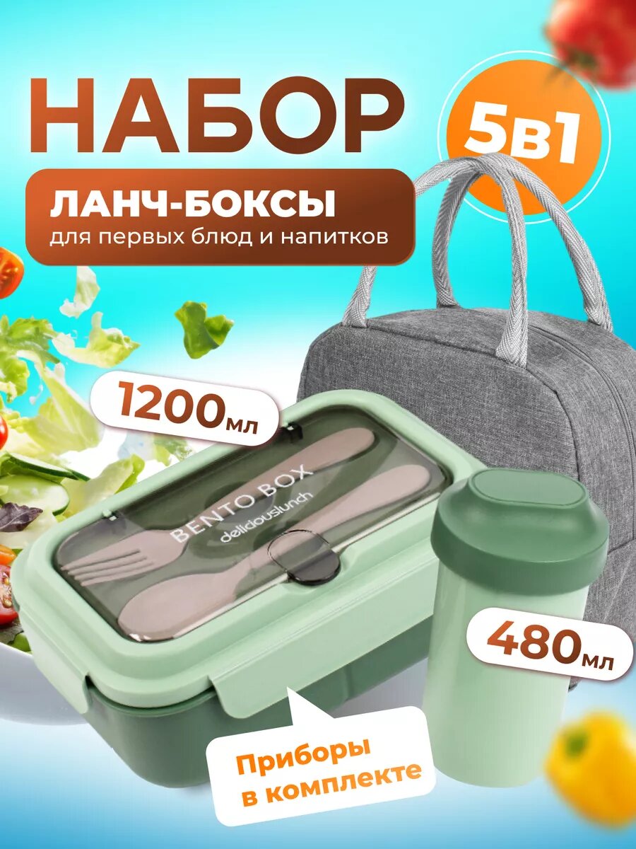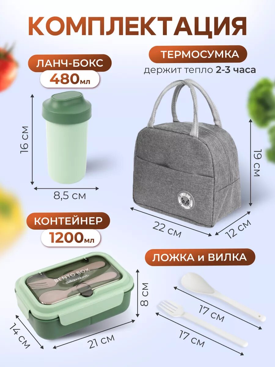 Купить Компактные контейнеры ланч - боксы для еды с термосумкой, набор контейнеров