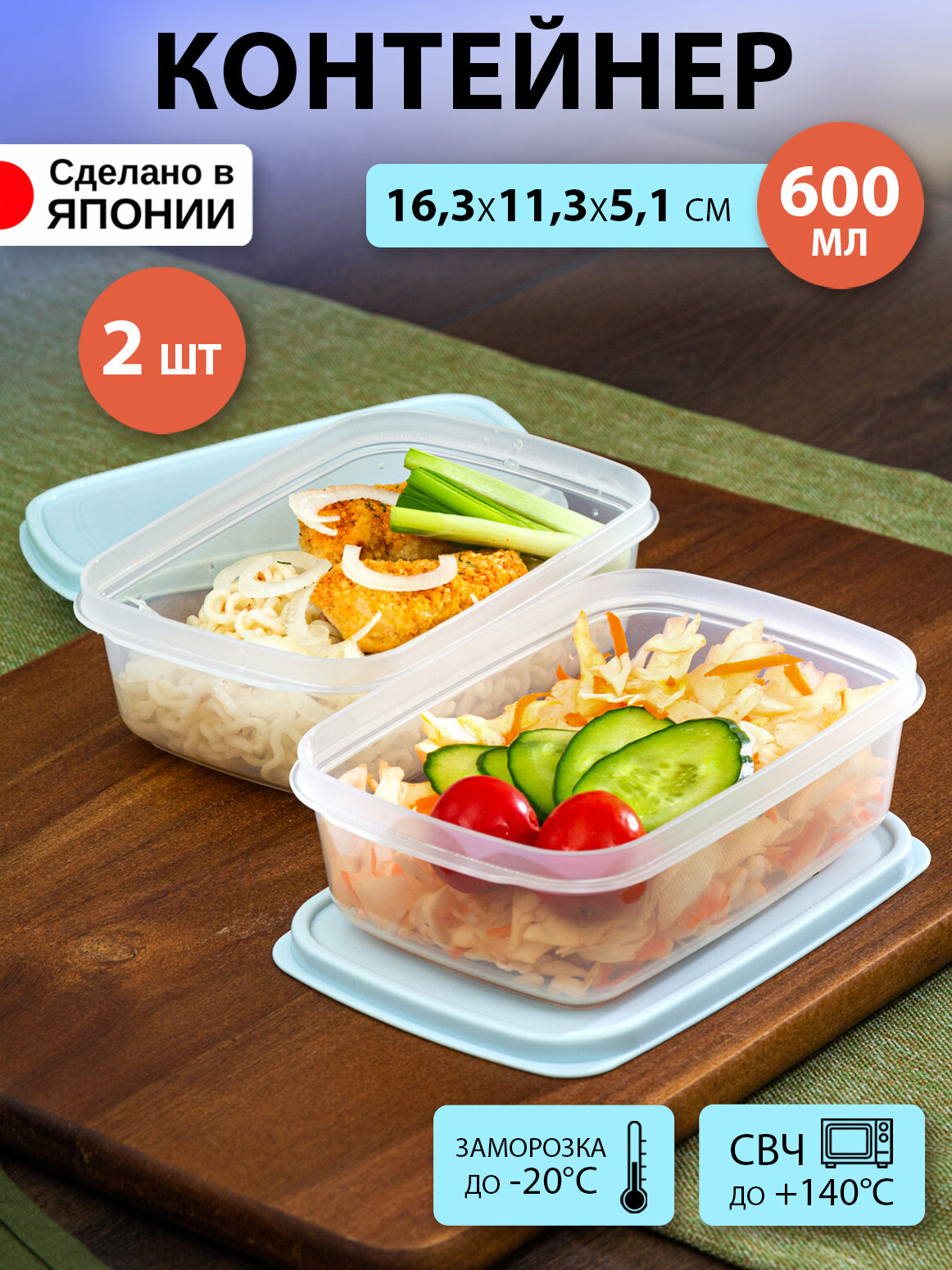 Контейнер для еды и хранения пластиковый с крышкой набор 2 шт 600 мл, 16,3х11,3х5,1 см интересное: