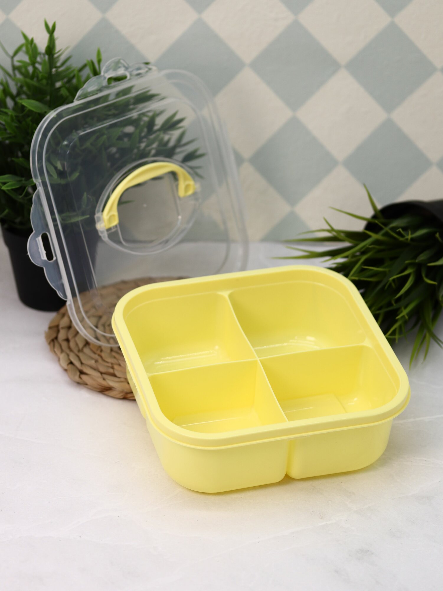 Купить Ланч бокс "Lunch" для еды секционный, пищевой пластик, 1600 мл, желтый