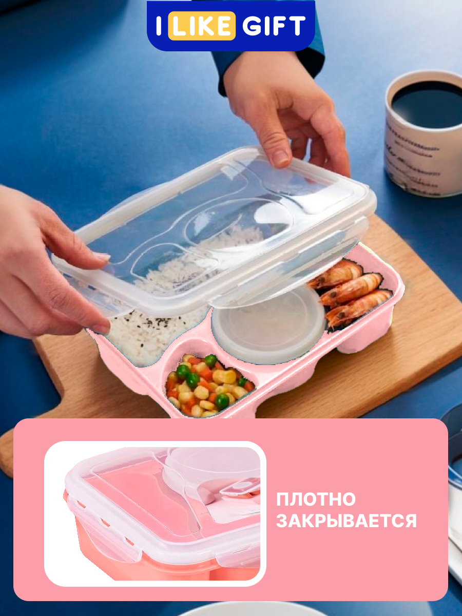 Ланч бокс "Tasty dinner" для еды, контейнер секционный с приборами, 900 мл