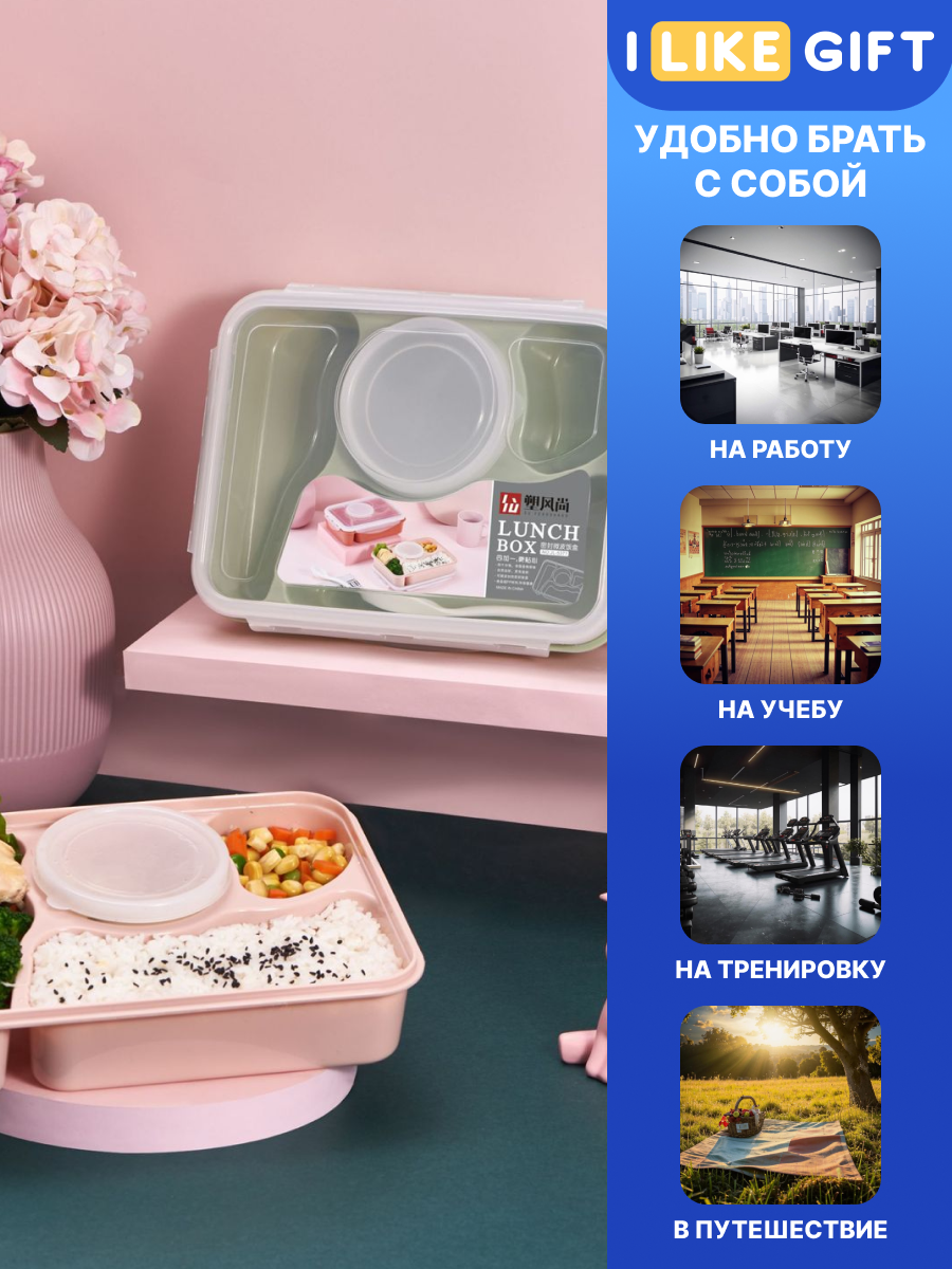 Ланч бокс "Section" для еды, контейнер секционный с супницей, 1000 мл